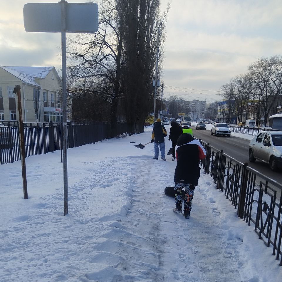 Они расчистили подход к школе и близлежащие дорожные переходы на улице Литовской.