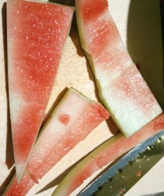 - Разделите арбуз на дольки, удалив семечки.