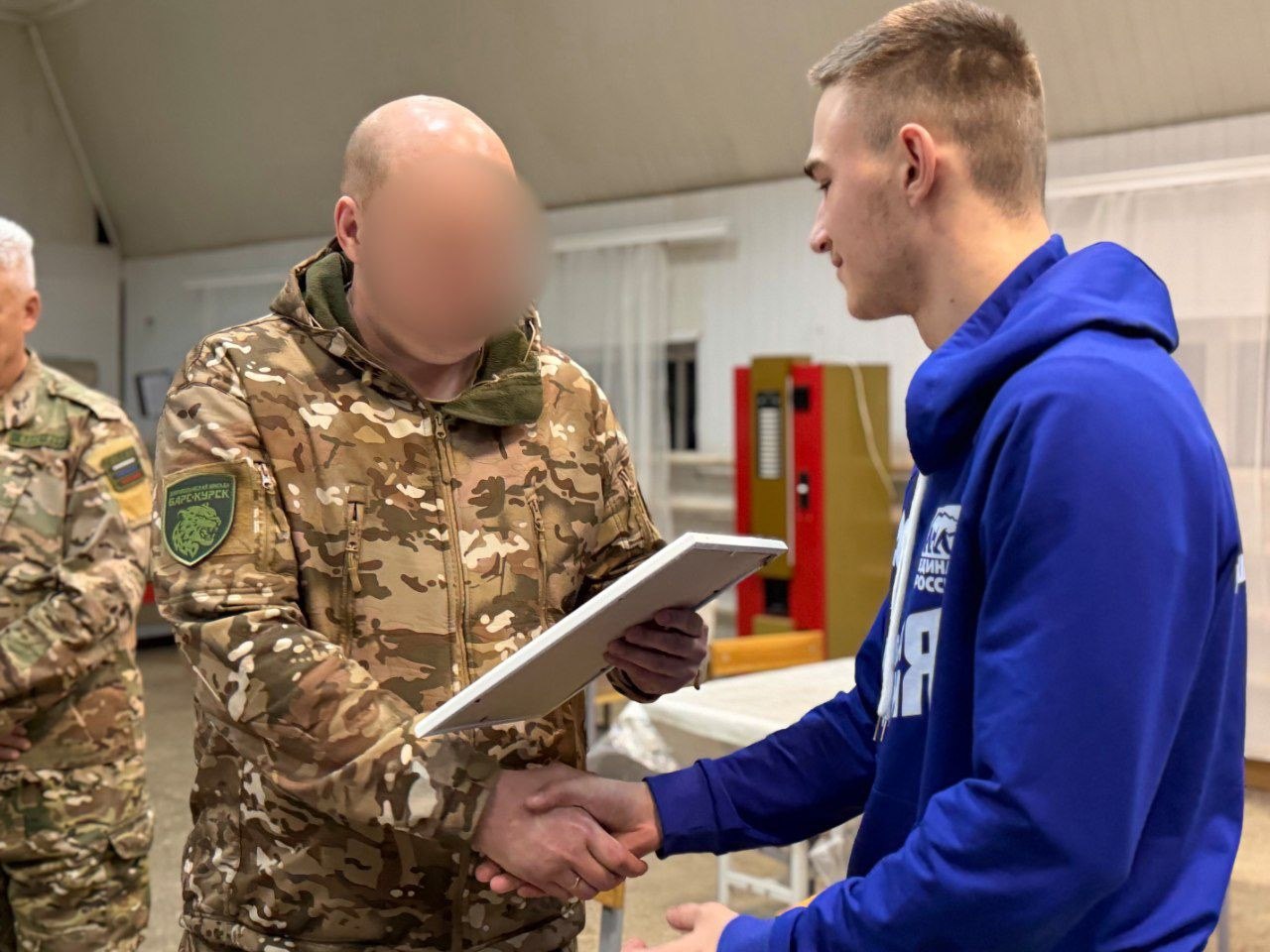 За чашкой чая ребята пообщались с военными – узнали, как начиналась их служба ещё в Советском Союзе, о причинах, побудивших вступить в «БАРС-Курск», задачах, выполняемых для защиты Курской области. Руководство батальона за помощь и всестороннюю поддержку добровольческого подразделения отметило партийцев и молодогвардейцев благодарственными письмами.