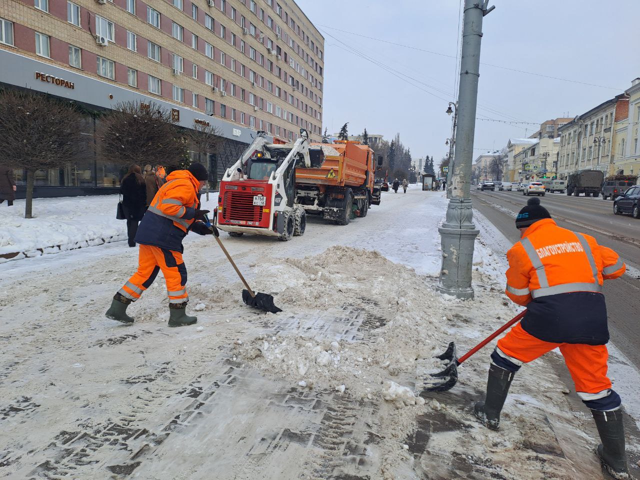 В комитете ЖКХ сообщили, что на городских улицах задействовано 36 комбинированных машин, погрузчики, пескоразбрасыватели, бульдозеры и роторные снегоуборщики. На некоторых участках не обойтись без уборки вручную ее выполняет 71 человек.