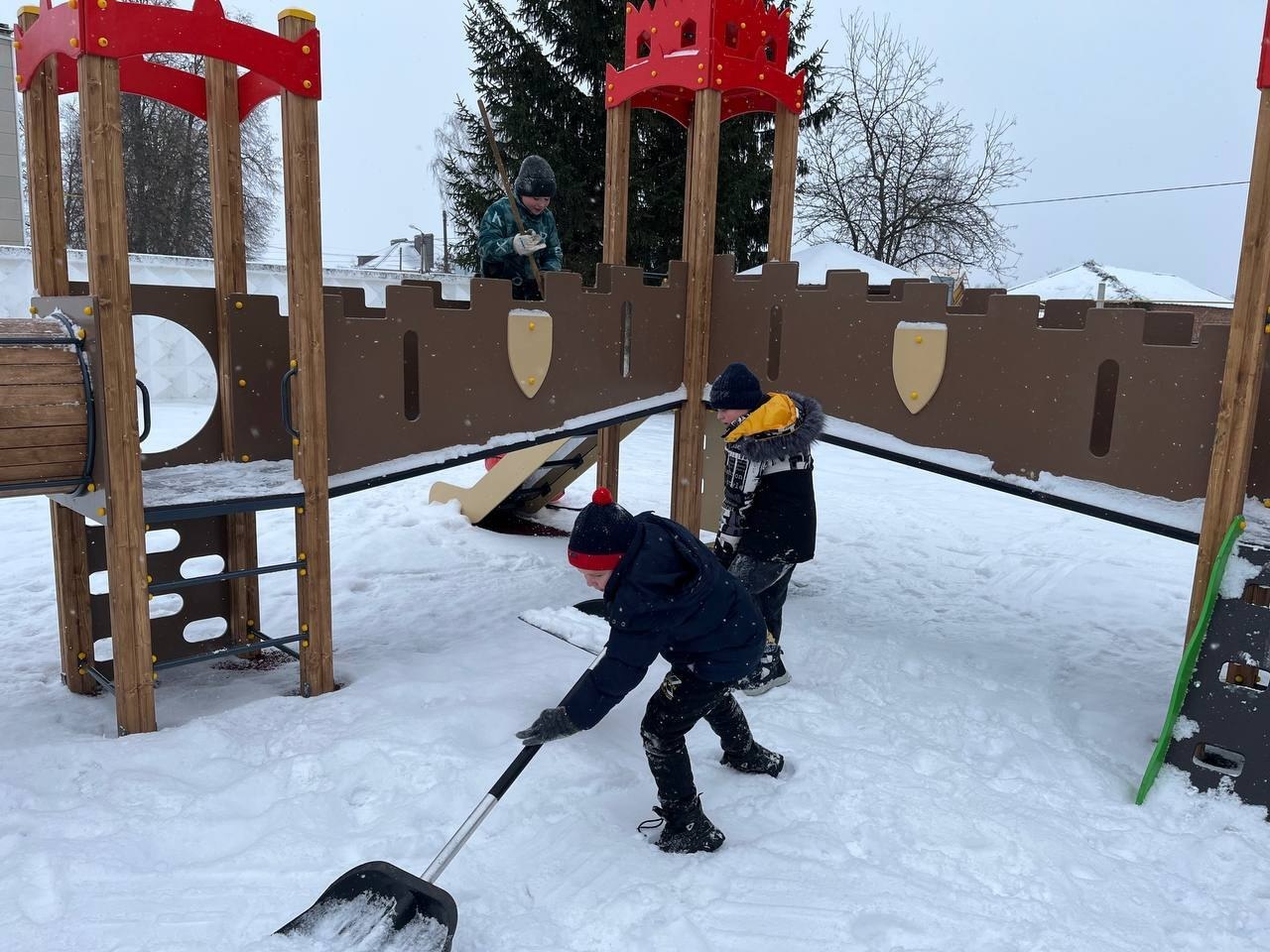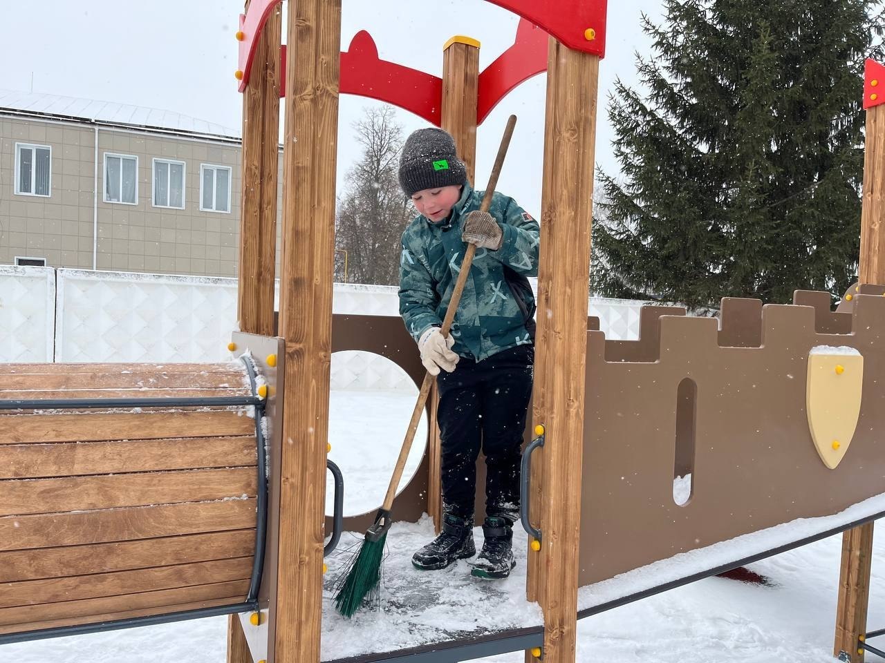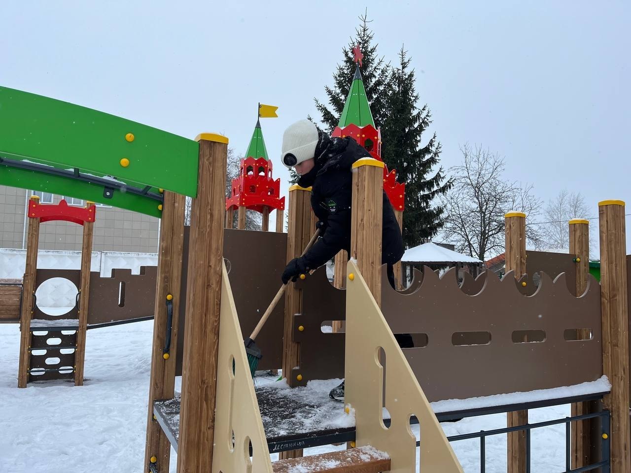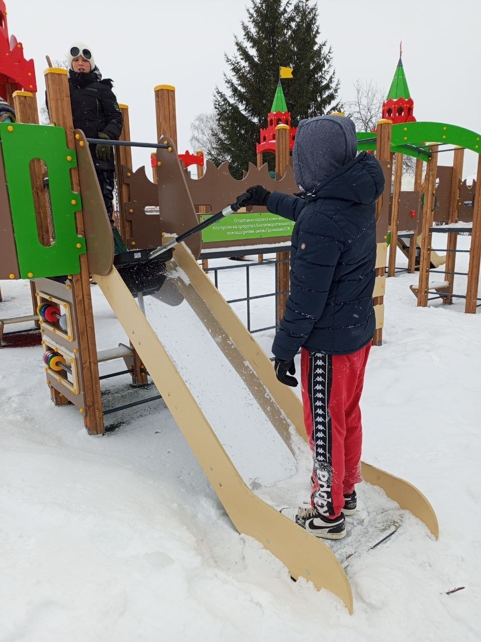 Слаженно, весело и с задором мальчишки и девчонки освободили горки и качели из «снежного плена». Теперь игровой комплекс снова готов к активным и безопасным играм.