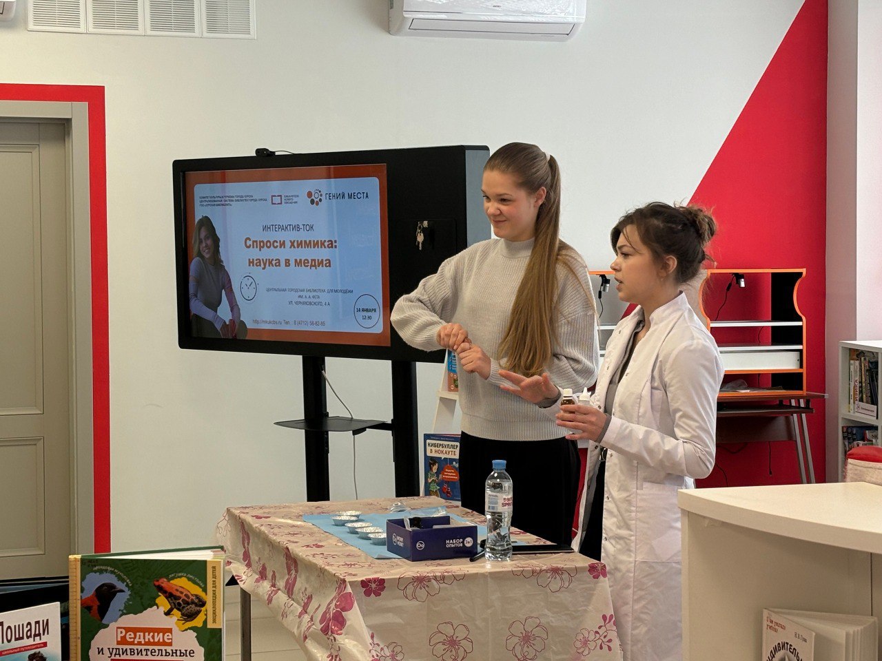 В Центральной городской библиотеке для молодёжи им. А. А. Фета в рамках проекта «Гений места» прошёл интерактивток «Спроси химика: наука в медиа».