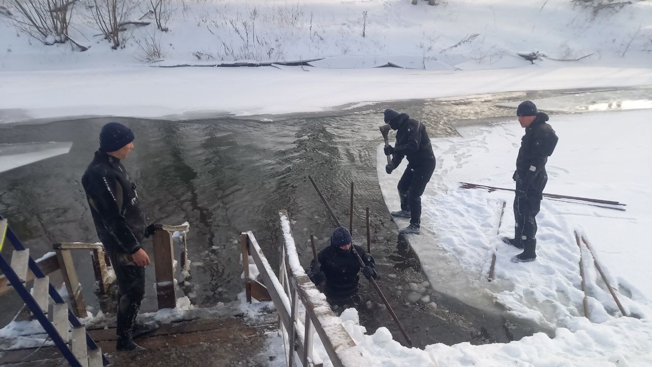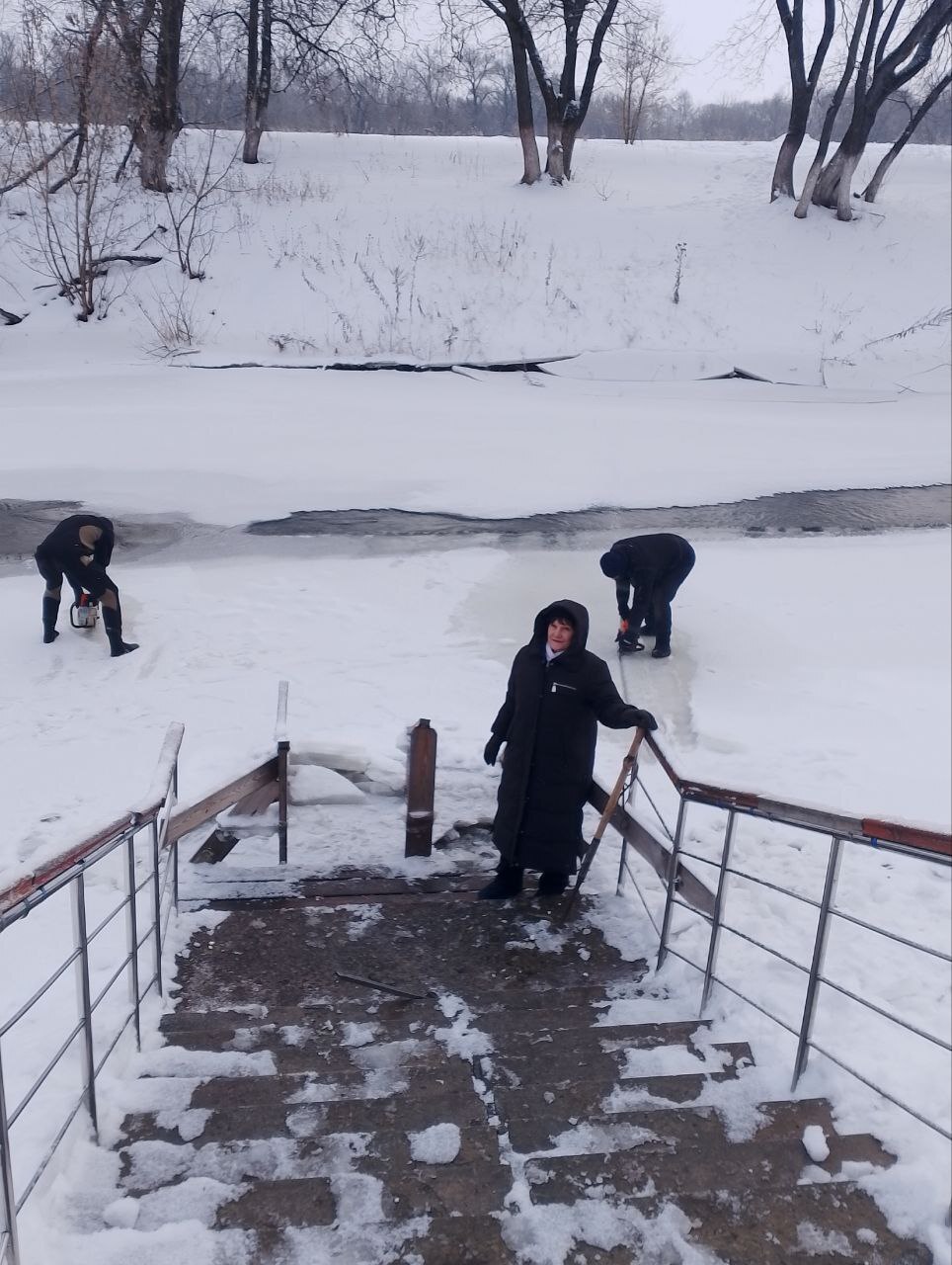 Сегодня в м. Свобода завершились работы по подготовке территории: расчистка дорог и тротуаров от снежных заносов, очистка дна реки водолазами, оборудование специальной проруби рядом с монастырем. Установлены необходимые ограждения для предотвращения несчастных случаев.