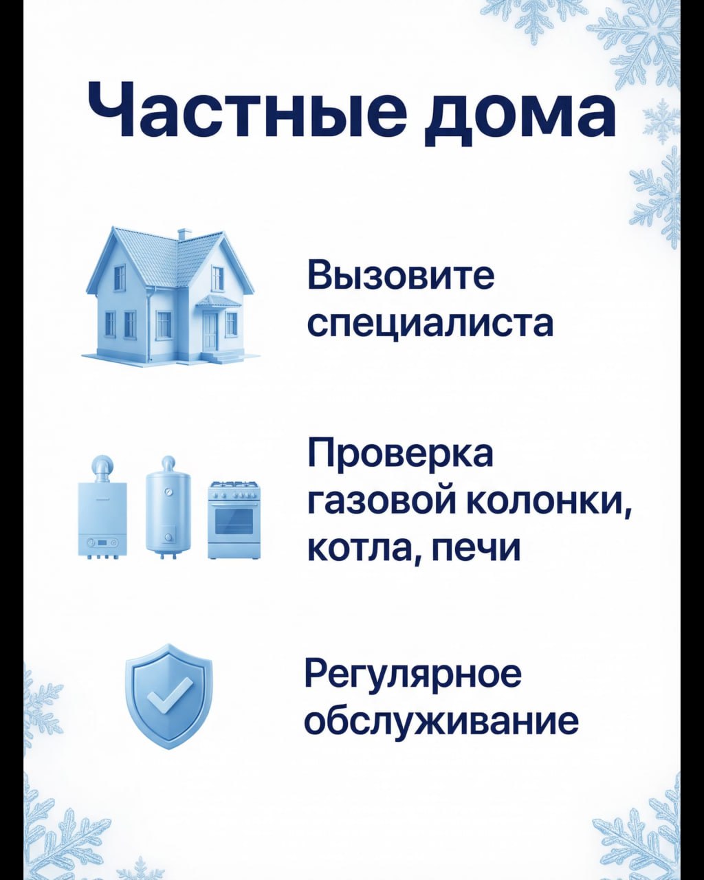— Владельцам частных домов: пригласите специалистов для осмотра и обслуживания дымовых и вентиляционных каналов.
