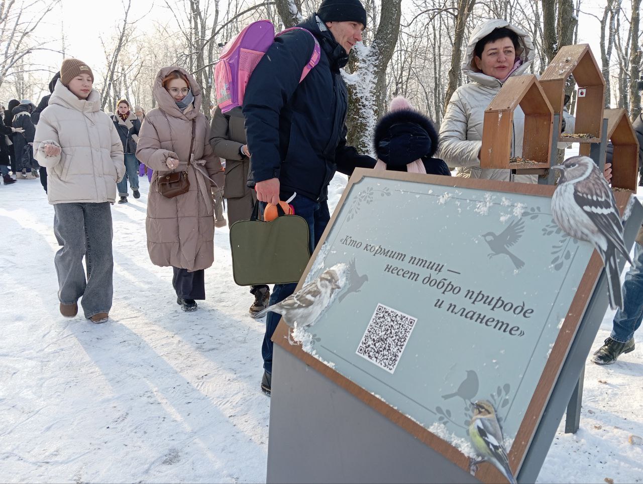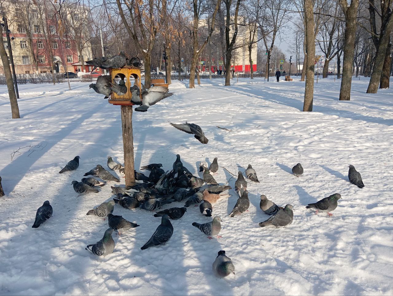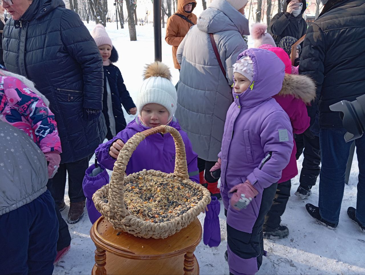 Кормушки наполнили школьники, воспитанники Дворца пионеров и их родители вместе с педагогами. Акцию проводят ежегодно с 2010 года. Особенно важно поддержать пернатых в морозы, когда еды в природе почти нет.