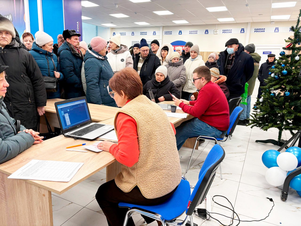 В пункте выдачи гуманитарных наборов, размещенном в штабе общественной поддержки «Единой России», партийцы организовали выдачу новогодних подарков жителям из приграничных районов Курской области. Причем не только самым маленьким, но и взрослым. Было выдано более 3000 подарков.