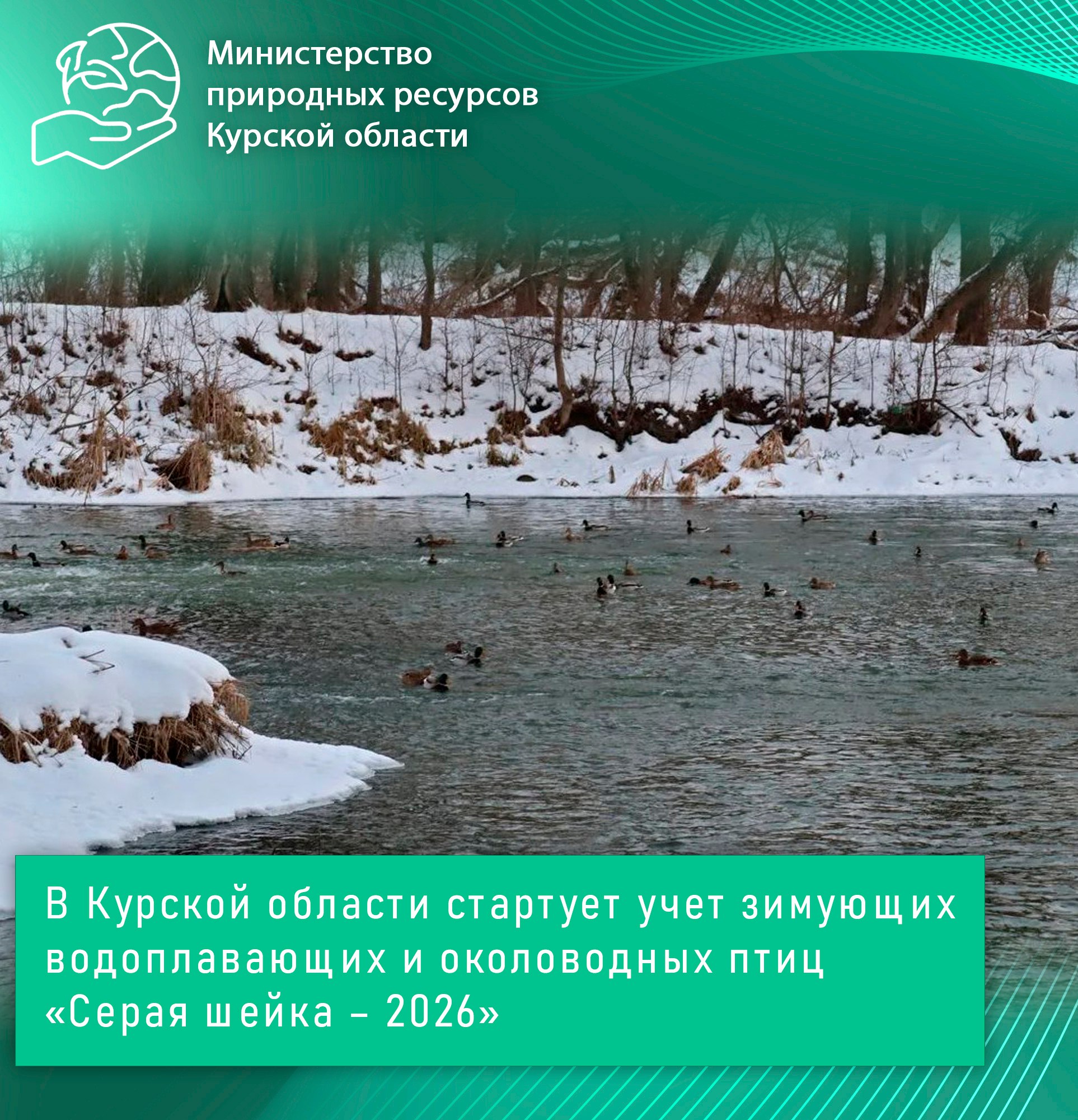 В Курской области стартует учет зимующих водоплавающих и околоводных птиц «Серая шейка – 2026»