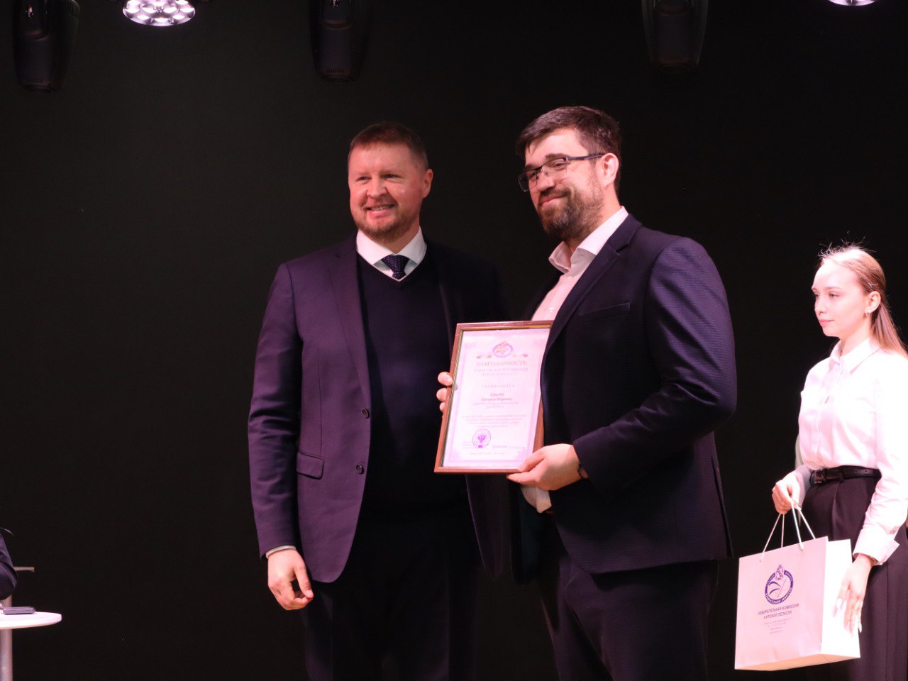 Председатель Избирательной комиссии Курской области Евгений Черкашин вручил благодарности курским журналистам, внесшим значительный вклад в освещение избирательного процесса в регионе.