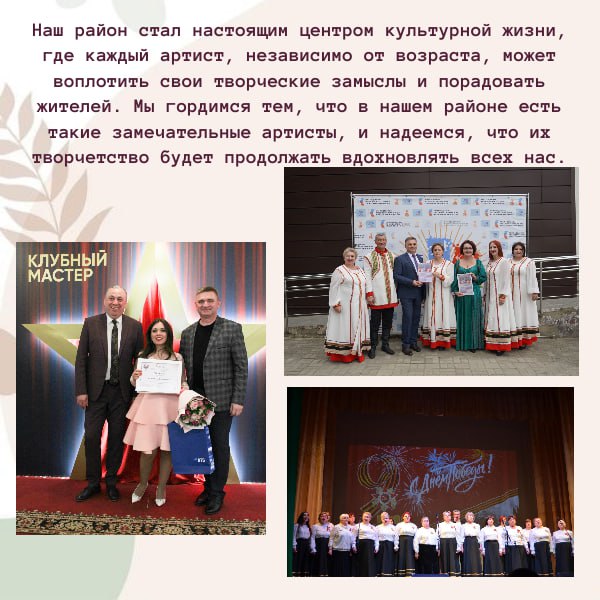 Желаем творческих успехов, вдохновения и неугасимого желания радовать зрителей своим искусством. Пусть каждый новый день приносит радость и удовлетворение, а ваши таланты продолжают раскрываться и сиять ярче.
