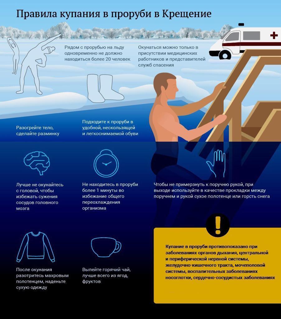 Не находиться в проруби более 1 минуты во избежание общего переохлаждения организма.