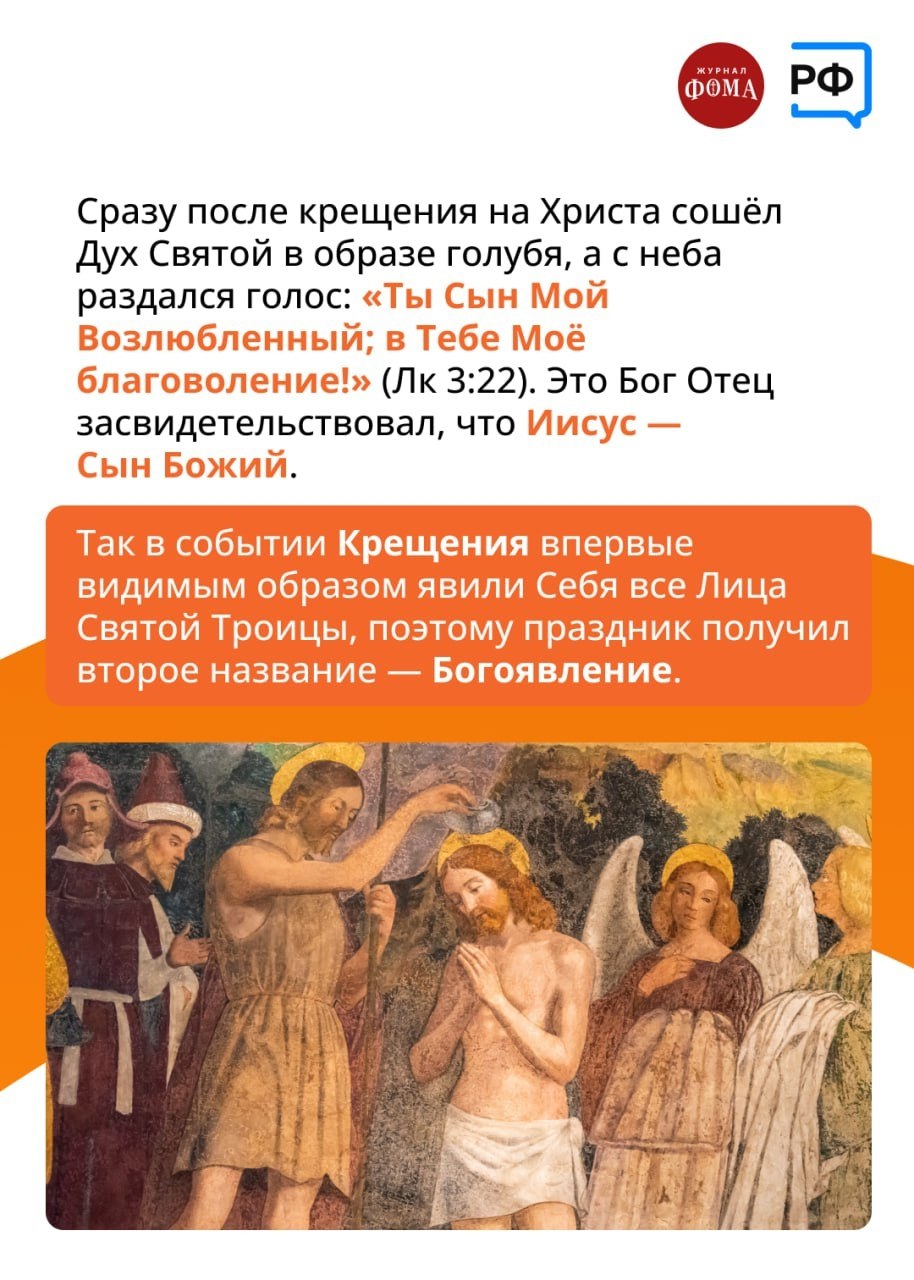 Праздник Крещения Господня — воспоминание о евангельском событии, когда Иисус Христос пришёл на берег реки Иордан и был крещён пророком Иоанном. В Русской православной церкви Крещение отмечается 19 января.