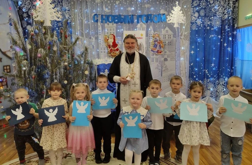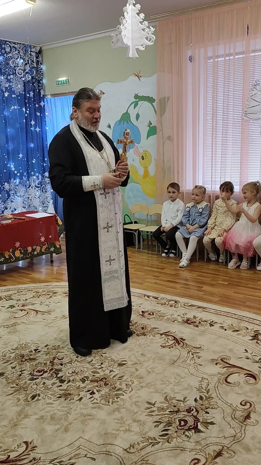 В святые дни наступившего 2026 года протоиерей Храма Пророка Божиего Илии Отец Георгий посетил детский сад "Дюймовочка" с праздничным визитом, чтобы поздравить детей и взрослых с Великим Христианским торжеством.