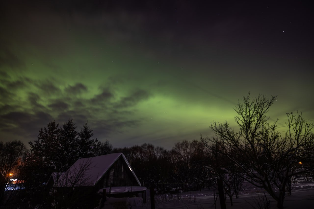 Доброе утро! Мощнейшая магнитная буря обрушилась на землю этой ночью. Северное сияние наблюдали даже в Крыму. Вот эти фотографии были сделаны в Смоленской области Сергеем Хабаровым в городской черте. Магнитная буря все еще продолжается. #ПрогнозПогоды