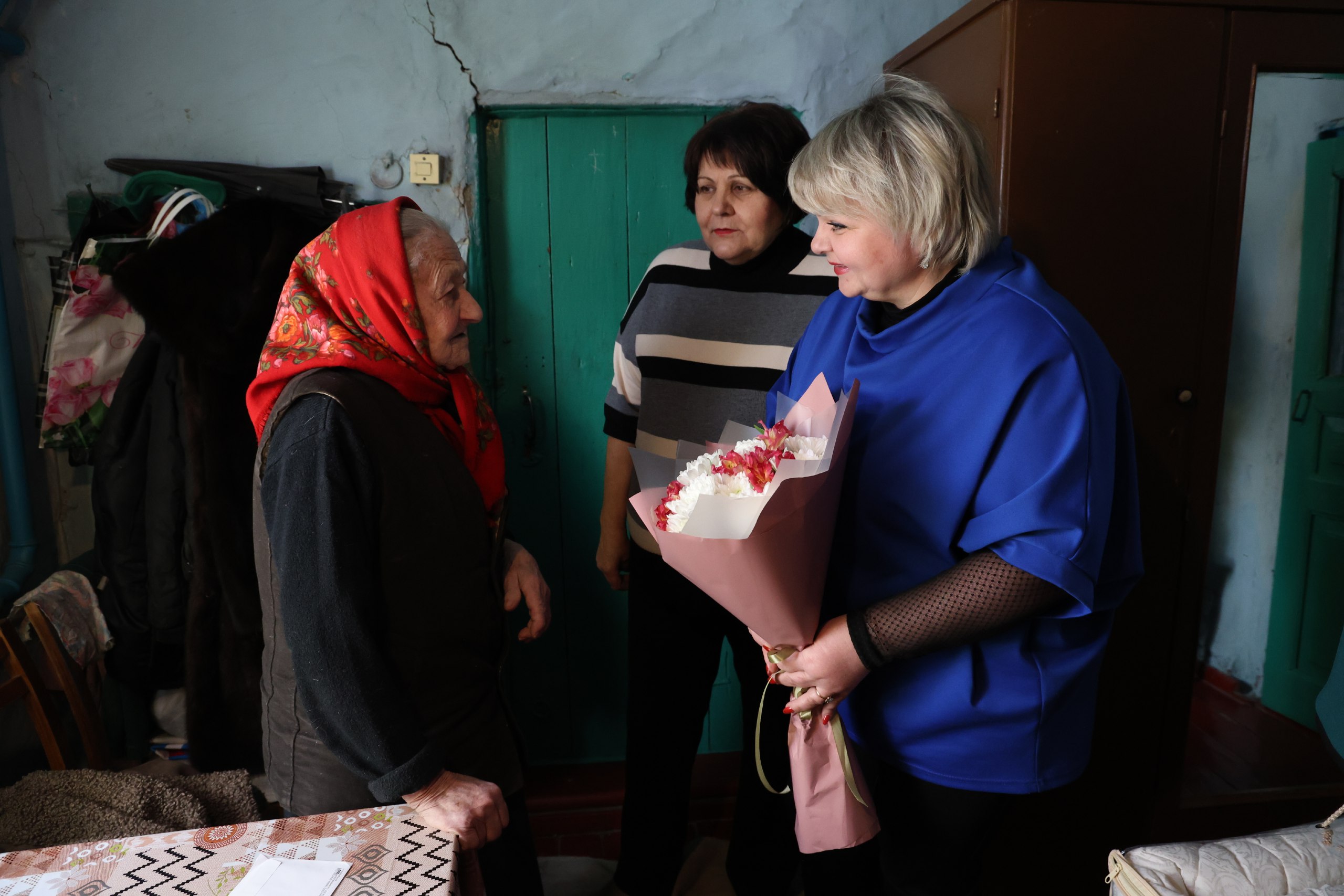 С теплыми пожеланиями крепкого здоровья, мира и добра заместитель Главы Железногорского района Татьяна Уткина вручила юбилярше поздравительный адрес от Главы Железногорского района Александра Фролкова и букет цветов. К поздравлениям присоединились начальник районного управления соцзащиты населения Ольга Локотилова, глава Линецкого сельсовета Татьяна Брехова, работники местного Дома культуры Олег Василюхин и Елена Землякова.