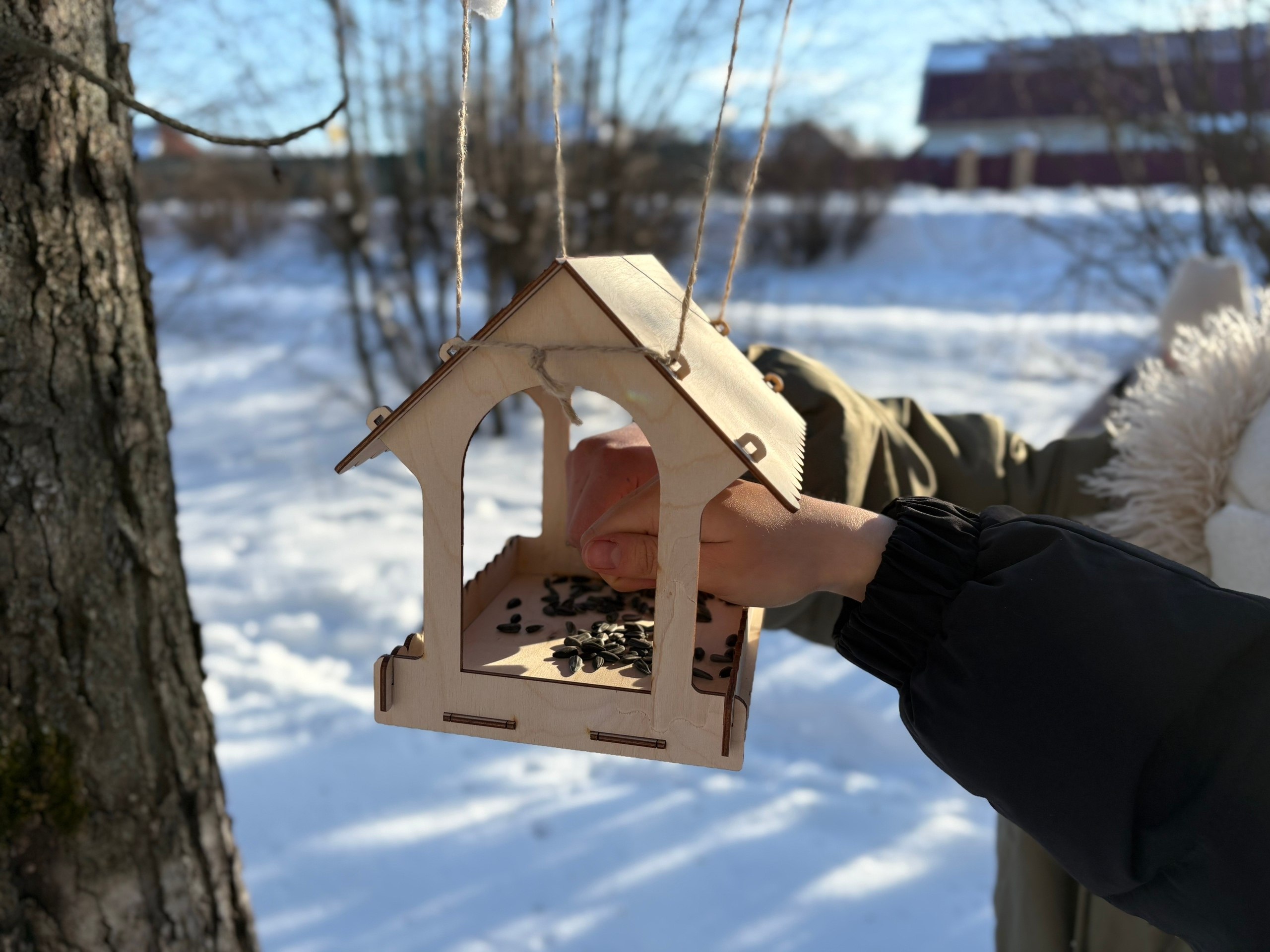 Если вы увидите, что кормушка пуста, можно принести немного семечек или крупы. Давайте поможем птицам пережить зиму!