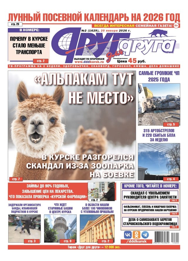 Во вторник, 20 января, вышел в свет свежий номер всегда интересной семейной газеты «Друг для друга» — одного из самых популярных и читаемых печатных изданий Курской области. Из него вы можете узнать следующее.