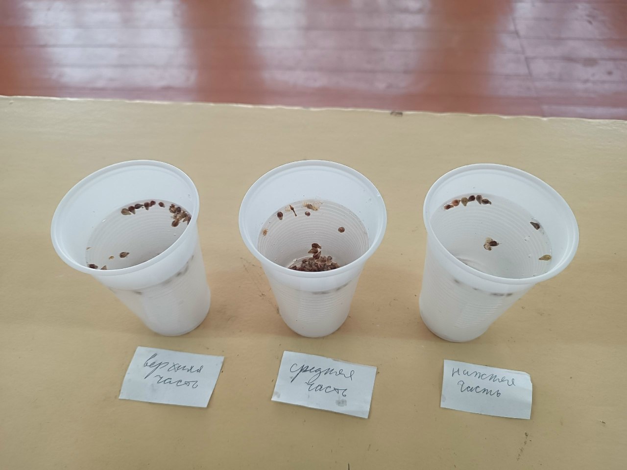 На втором этапе эксперимента ребята применили метод флотации, чтобы отобрать качественные семена и исключить непригодные для дальнейшего исследования.
