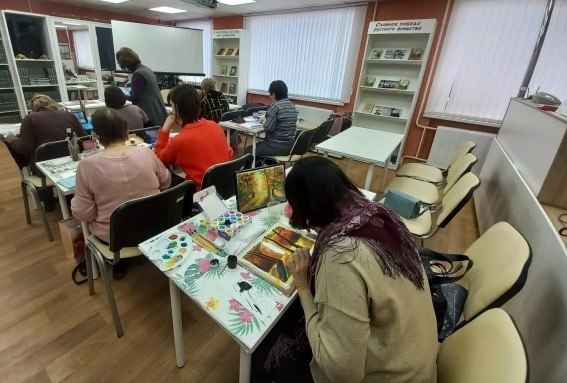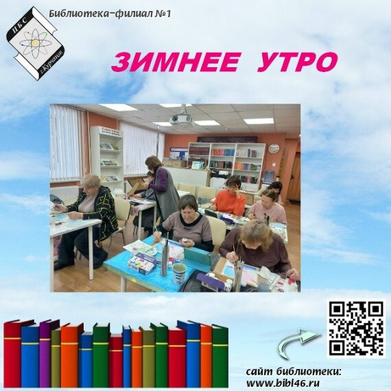 19 января 2026 года в читальном зале Библиотеки — филиала №1 на занятии факультета «Рисования» Университета народного просвещения им. Т. П. Николаева для пожилых людей города Курчатова художник Н. Сенькова провела творческое занятие по написанию картины «Зимнее утро».