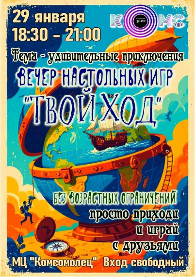 29 января Клуб молодой семьи "Семья" в Молодежном центре "Комсомолец" организует традиционный вечер настольных игр "Твой ход".