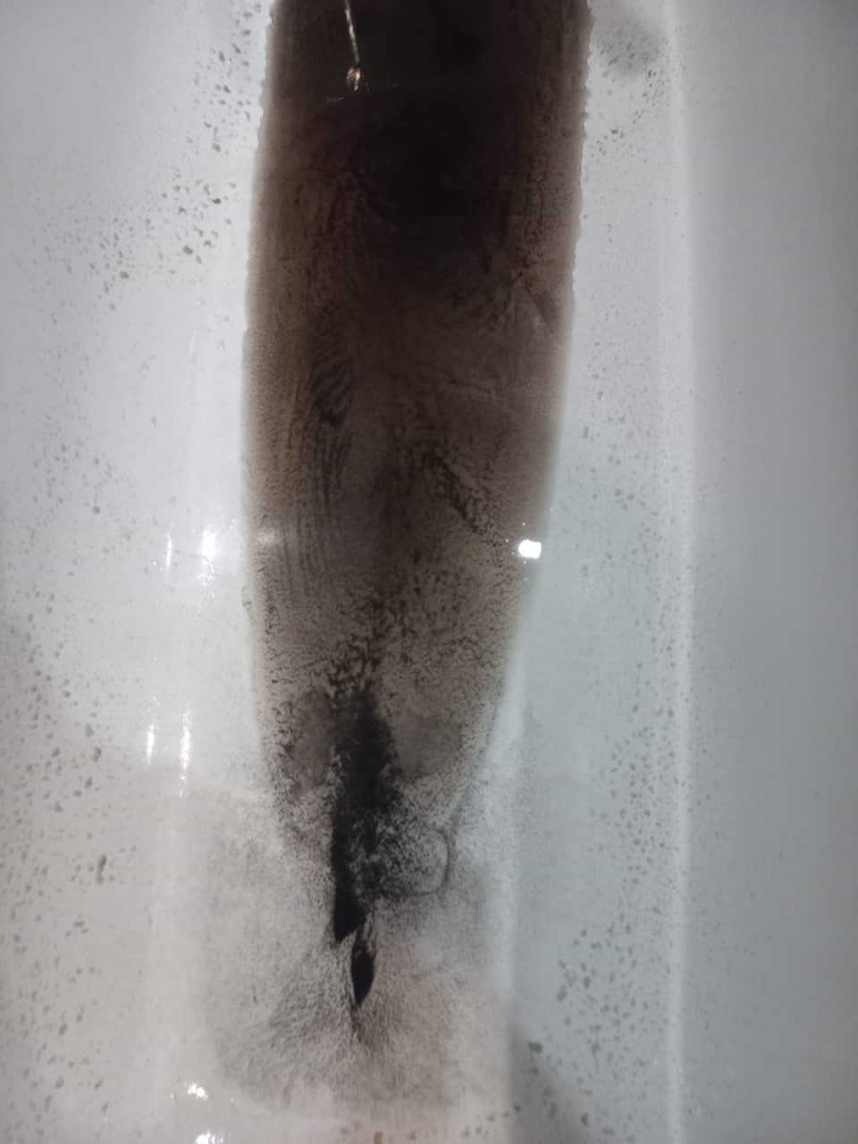 К несчастью, «черная» в данном случае – не преувеличение. Оценить качество воды вы можете сами. Фото прилагаем. Легко представить, насколько трудно потом отмывается вся сантехника.