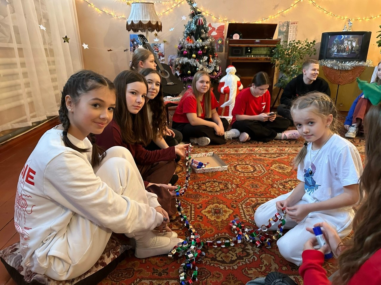 Участники погрузились в атмосферу советского кино. После просмотра фильма и душевных разговоров перешли к музыке: под гитару звучали любимые советские песни.