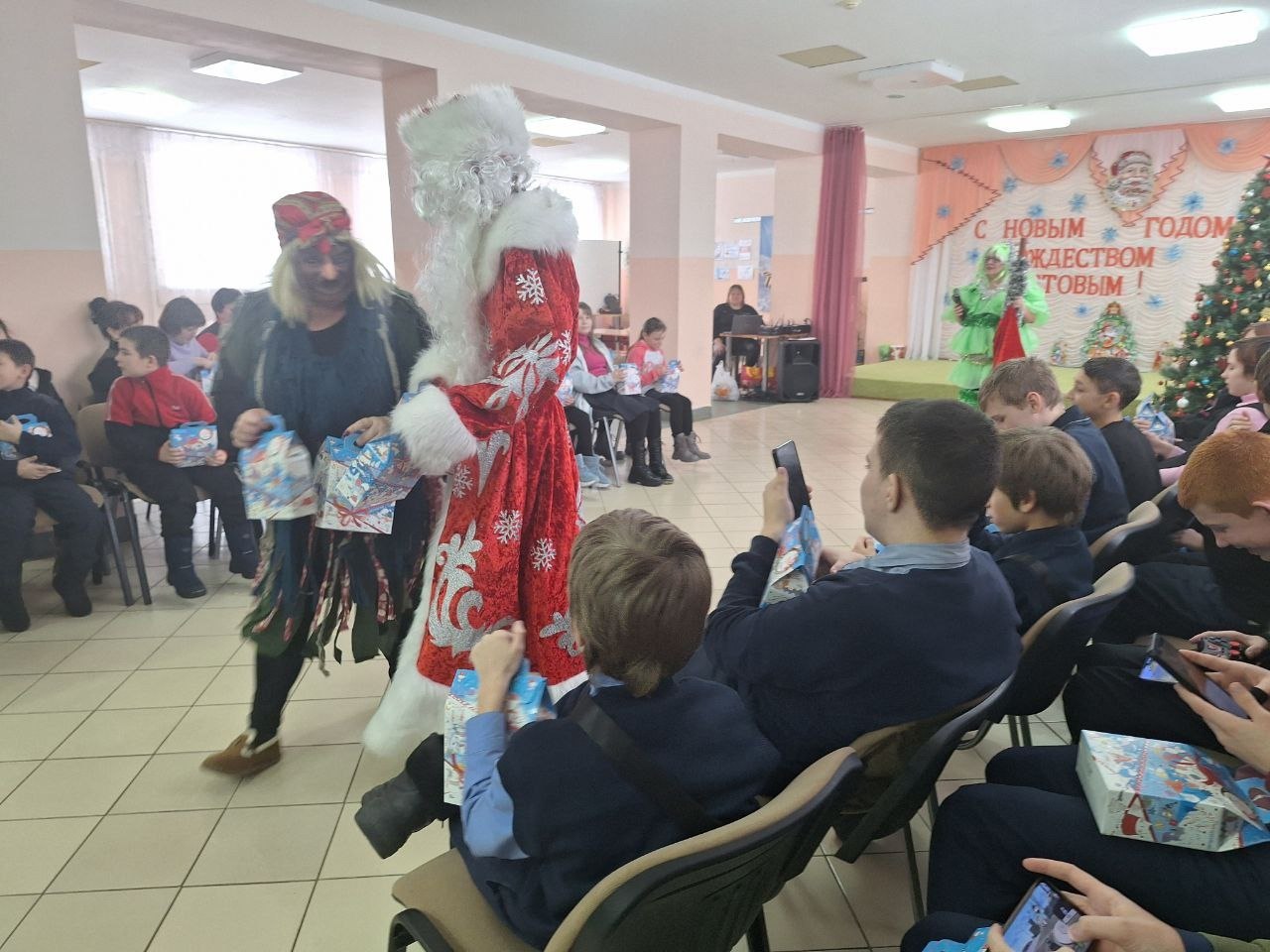 Дети с радостью кружились в хороводе вокруг нарядной елки, читали стихи и получали заслуженные подарки от Деда Мороза за активное участие в конкурсах. Сладкие угощения стали приятным дополнением к праздничной атмосфере.
