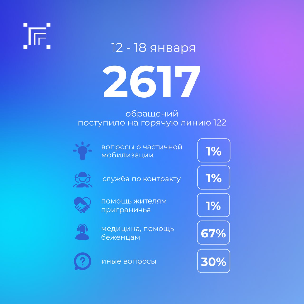 Всего за прошедшую неделю на «горячую линию» 122 поступило 2617 обращений.