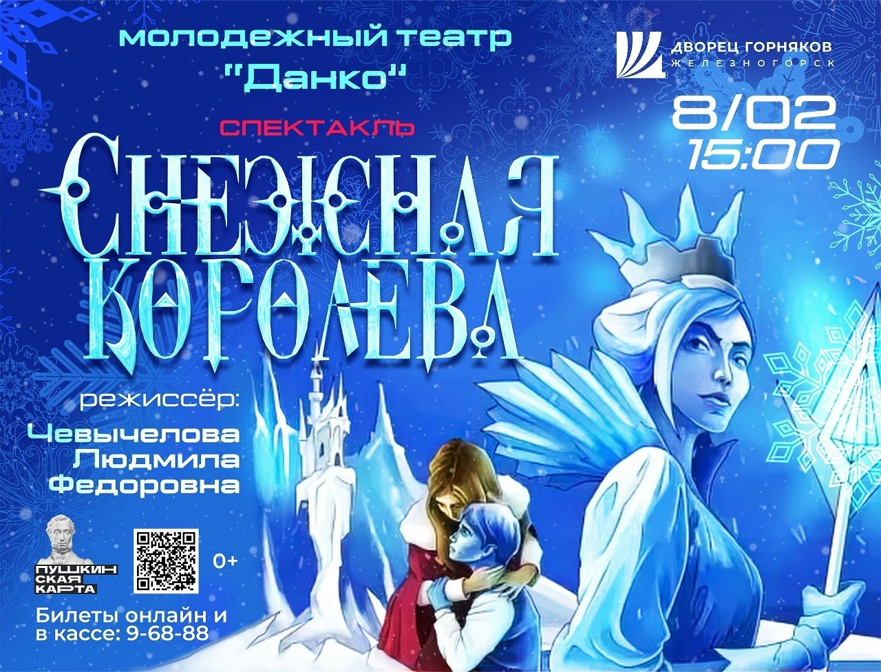 Молодежный театр «Данко» приглашает жителей и гостей города Железногорска окунуться в мир одной из самых любимых и трогательных сказок Ганса Христиана Андерсена "Снежная королева".