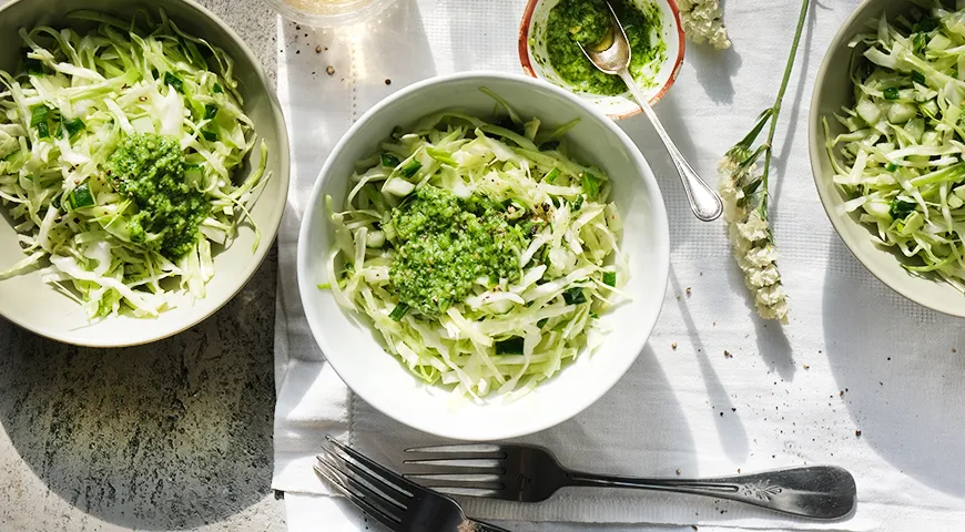 Зелёные овощи, входящие в состав, богаты витаминами A, C и K, а также антиоксидантами, которые поддерживают здоровье кожи и сосудов. Авокадо добавляет здоровые жиры, способствующие лучшему усвоению витаминов и сохраняющим чувство сытости. Зелень помогает улучшить пищеварение и очищение организма, делая этот салат не только вкусным, но и крайне полезным.
