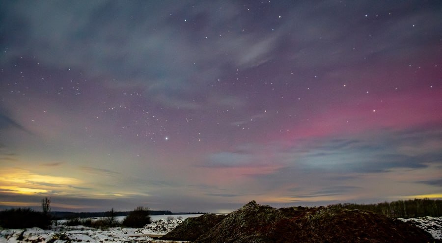 Северное сияние в Курской области было сложно увидеть невооруженным взглядом, но его поймала более чувствительная оптика фотокамеры.