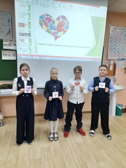 В завершение занятия прошла рефлексия «Доброе сердце»: каждый ученик написал одно доброе дело, которое готов совершить уже сегодня, и поделился своими мыслями с классом.