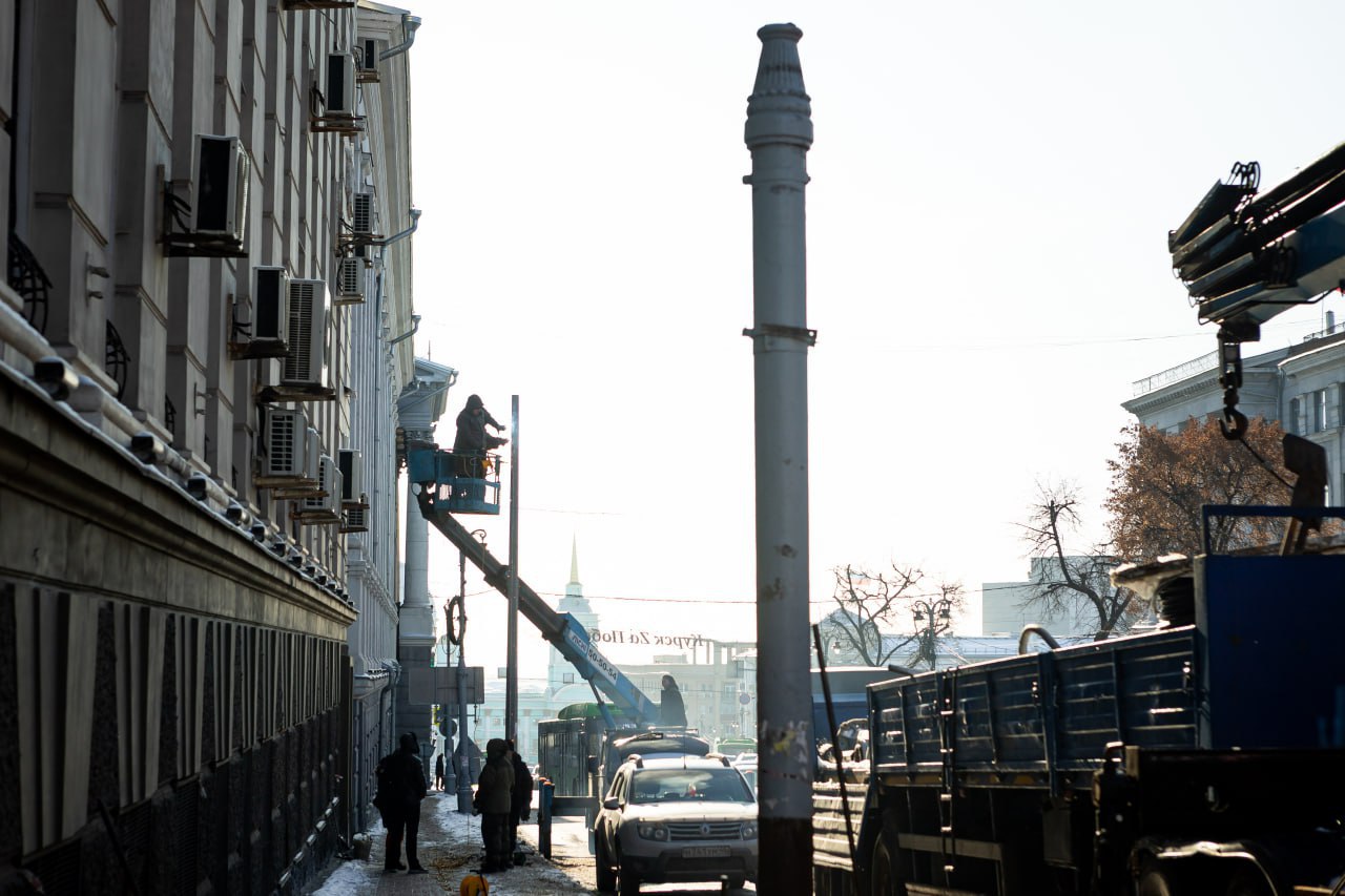 Подрядчик оперативно приступил к выполнению необходимых мероприятий. Помимо опор восстановят и светильники и повесят белт-лайты. Подрядчик ставит современные опоры, поскольку старые были сняты с производства. Подобные опоры выпускали в 60-70 годах.