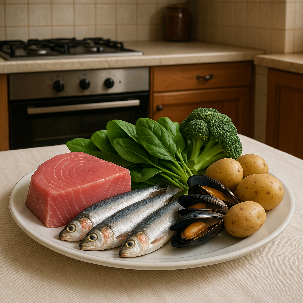 - Рыба и морепродукты: мидии, устрицы, сардины, тунец.
