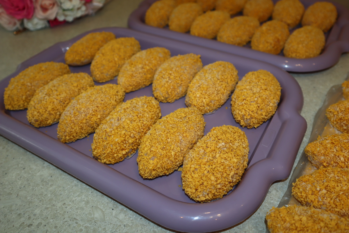 Формировать котлеты следует среднего размера (по 85-90 г), обвалять их в панировке и заложить на поднос для заморозки. Замороженные котлеты удобно перемещать в пакеты и хранить в морозильной камере. Таким образом можно заготовить до 35 котлет за раз, которые подойдут как для жарки, так и для запекания. Это идеальный вариант для быстрого ужина всей семье.