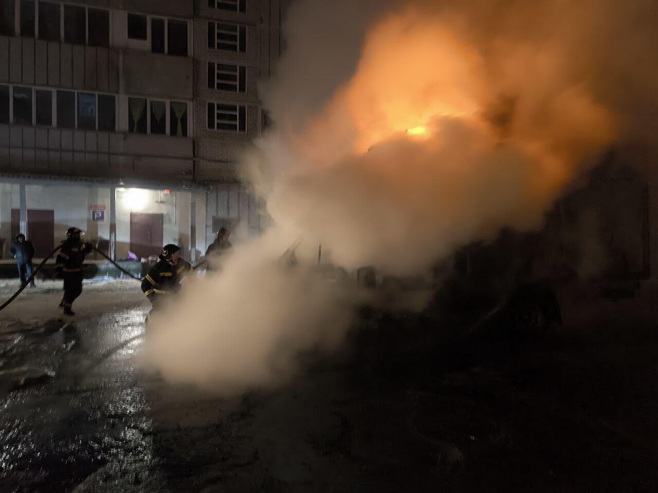 Оперативные службы незамедлительно выехали на место происшествия, где горели два автомобиля. Возгорание было ликвидировано в 2:53.