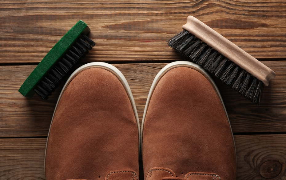 - Уберите сухую грязь. Используйте специальную щетку для замши, легкими движениями удаляя загрязнения.