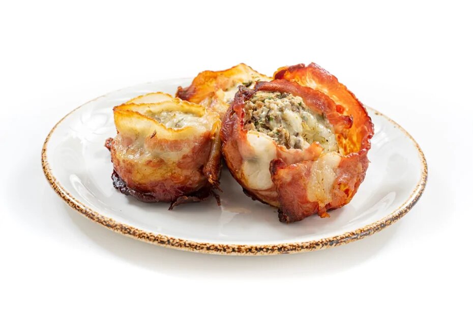 Подготовка: убедитесь, что все ингредиенты под рукой, и разожгите угли на мангале.Промойте грибочки, отделите ножки от шляпок.Мелко нарежьте ножки шампиньонов.Натерите пармезан на мелкой терке.Измельчите петрушку и чеснок.Смешайте рикотту, пармезан, петрушку, чеснок и нарезанные ножки грибов. Приправьте молотым перцем, солить не следует.Начините шляпки шампиньонов получившейся сырной смесью.Обверните начиненные грибочки ломтиком бекона и закрепите их зубочисткой. Так поступите со всеми грибами.Поместите грибы на гриль и жарьте до тех пор, пока сыр не расплавится. Для более быстрого приготовления можно накрыть грибы фольгой.Подавайте шампиньоны с беконом горячими, наслаждаясь неповторимым вкусом!Эта простая и быстрая закуска украсит любое застолье, привнося в атмосферу летнего праздника особые нотки уюта и тепла.