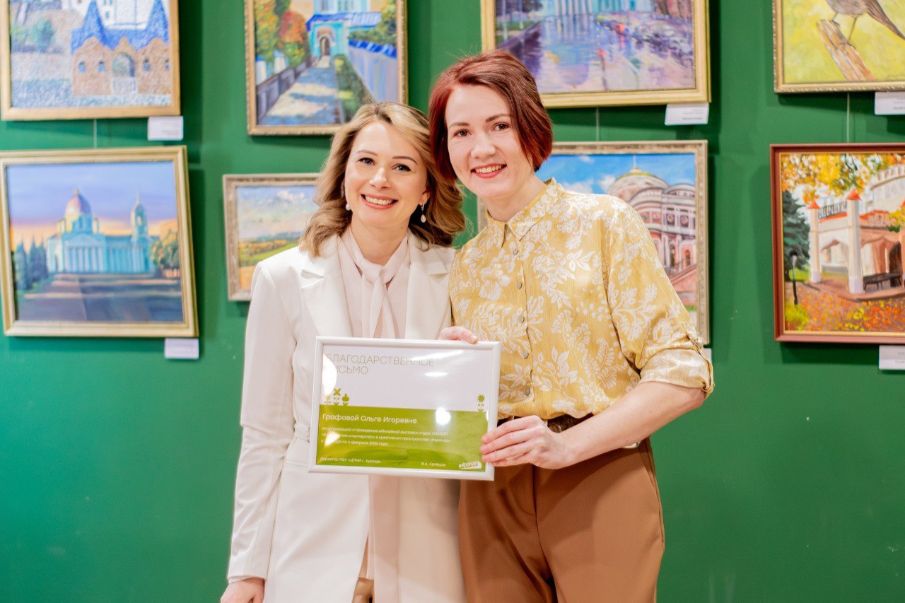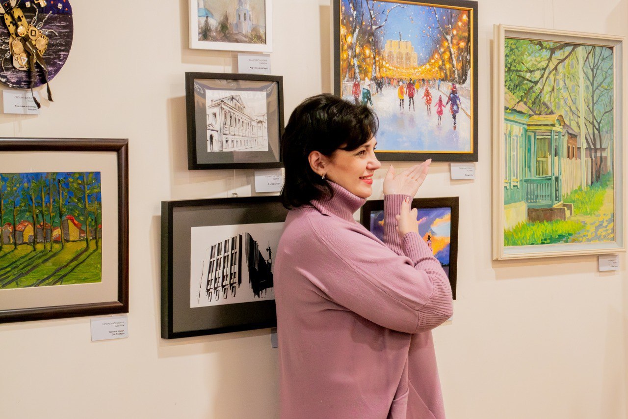 В центре внимания оказались две уникальные экспозиции: коллективная выставка «Курск: город в красках», где каждый холст рассказывал свою историю о любимом городе, и персональная выставка юной талантливой художницы, ученицы студии Иры Байбаковой «Грани таланта».