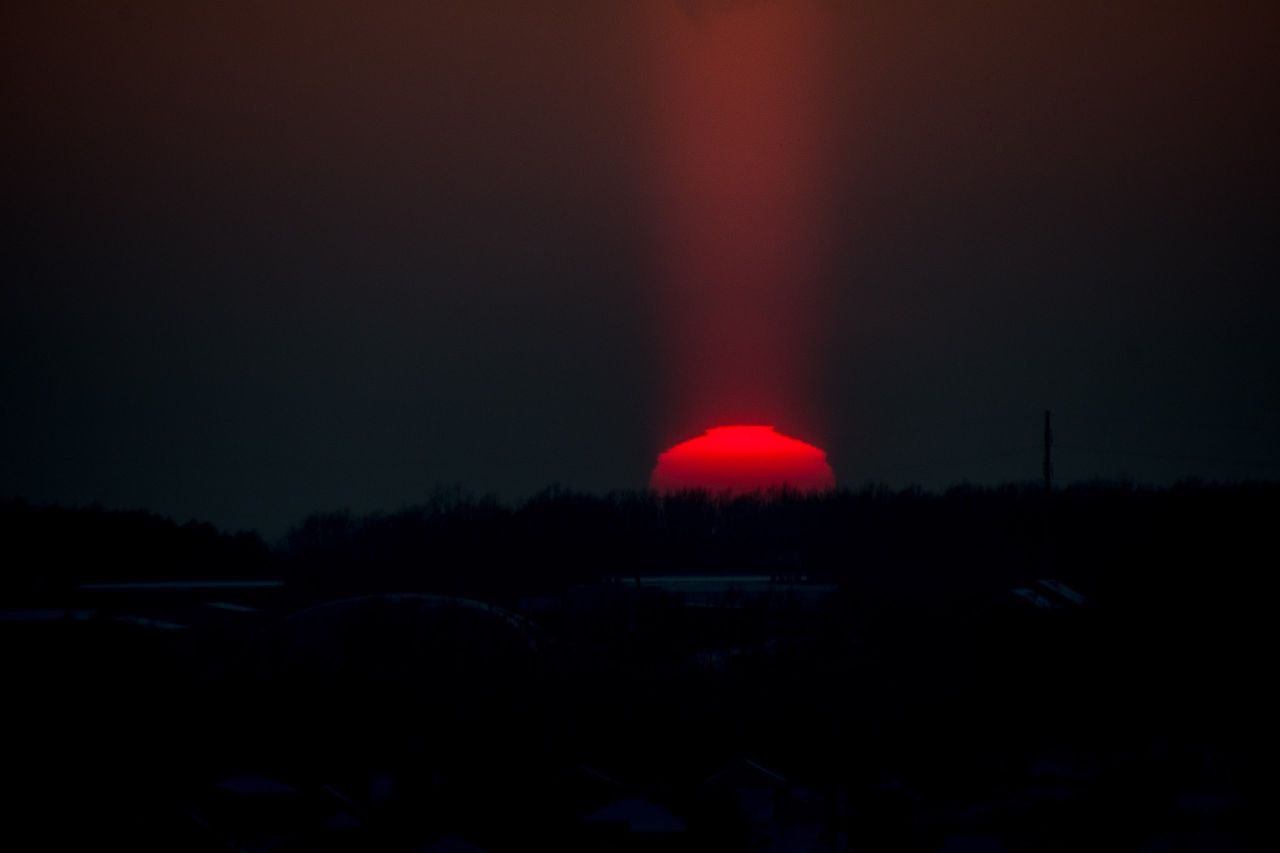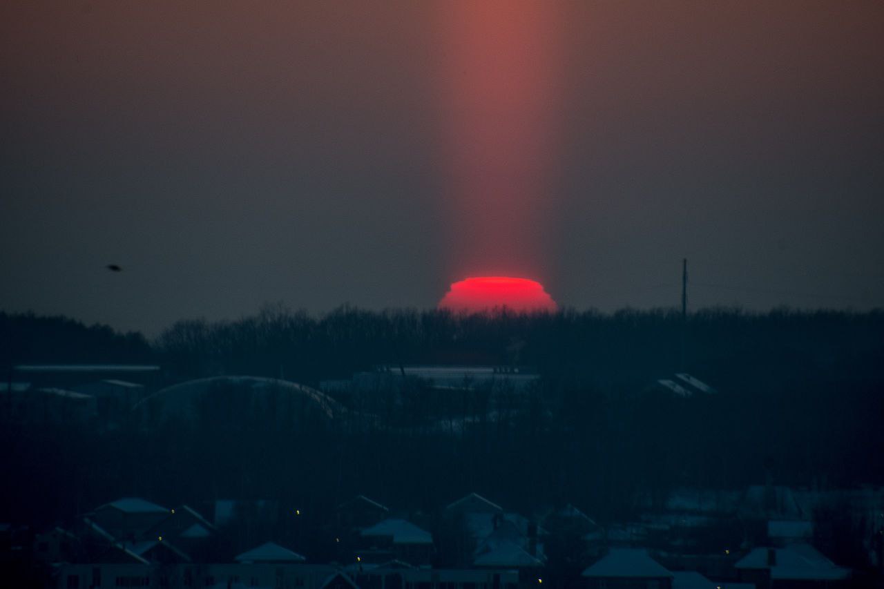 Подписчики «Городских известий» делятся фотографиями светового столба над Курском — редкого явления, возникающего при сильном морозе.