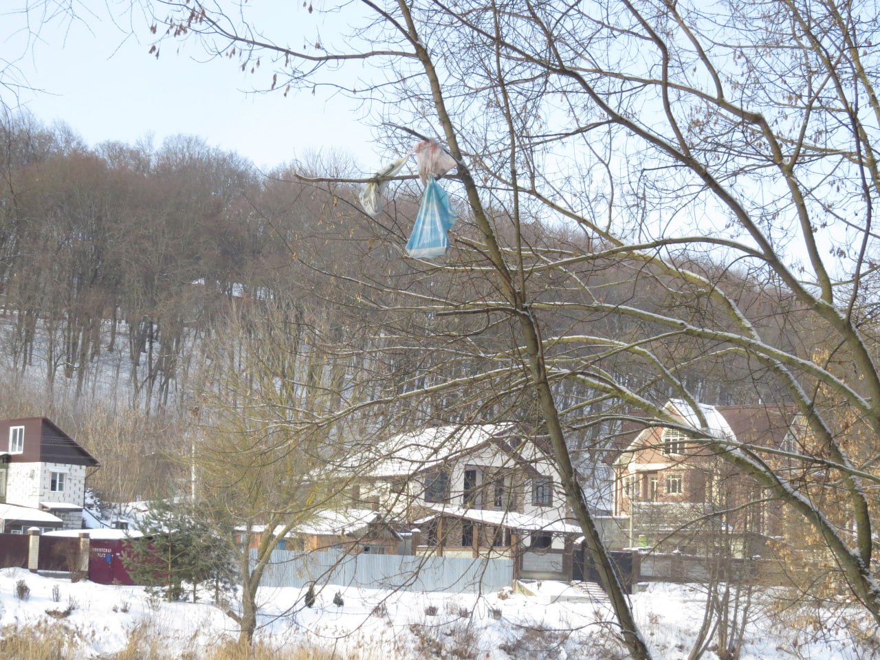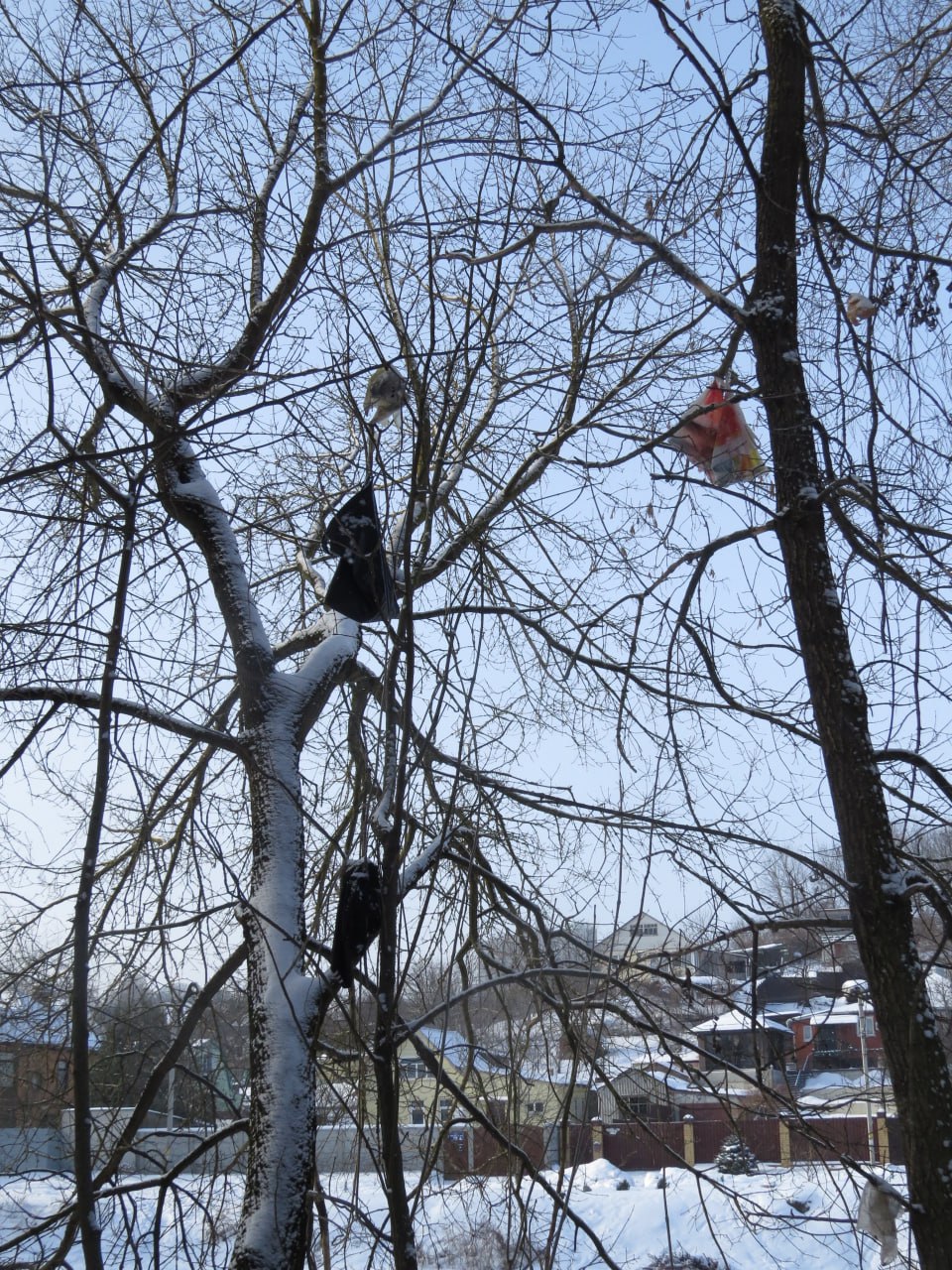 В сообществе «Птицы города Курска» рассказали о вопиющих фактах загрязнения природы. Неизвестные начали целенаправленно развешивать пакеты с бытовыми отходами на деревьях.