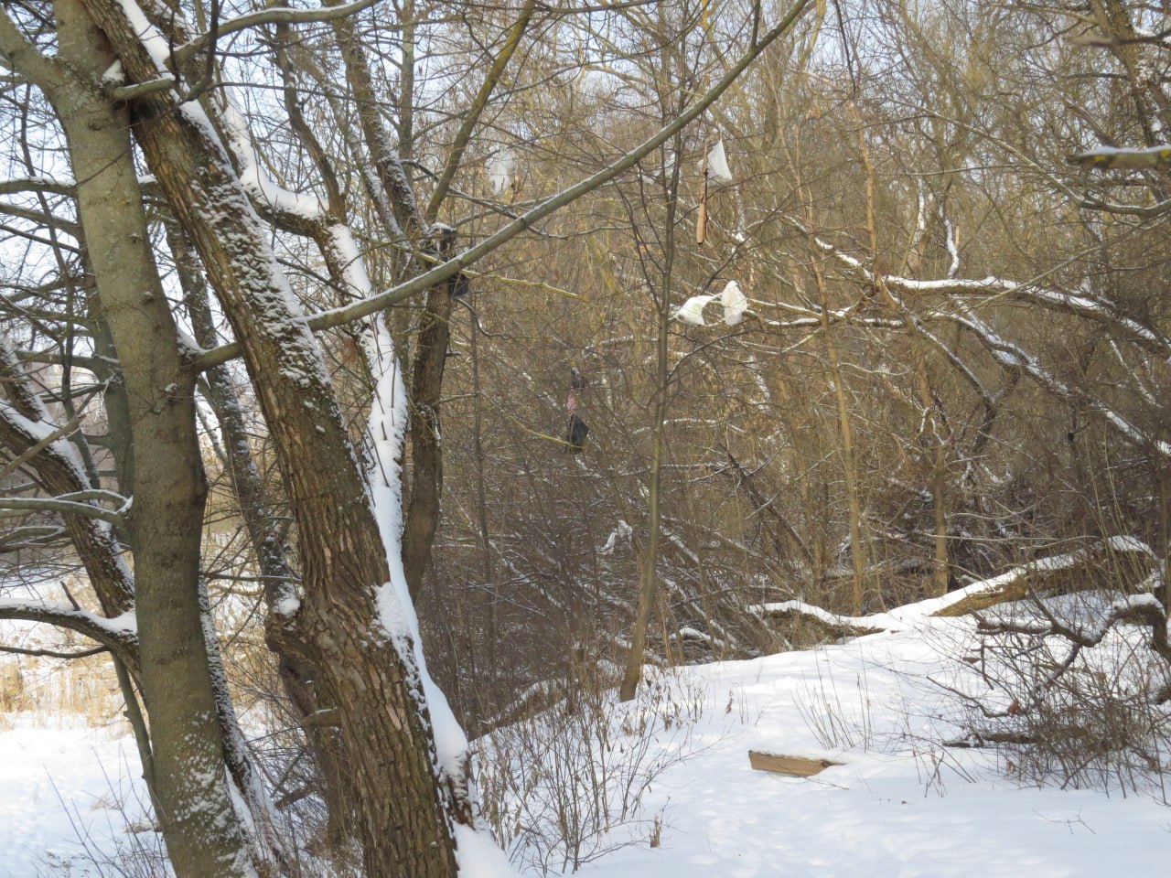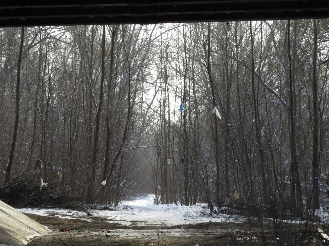 В Курске вандалы забрасывают деревья в Заревском лесу пакетами с мусором