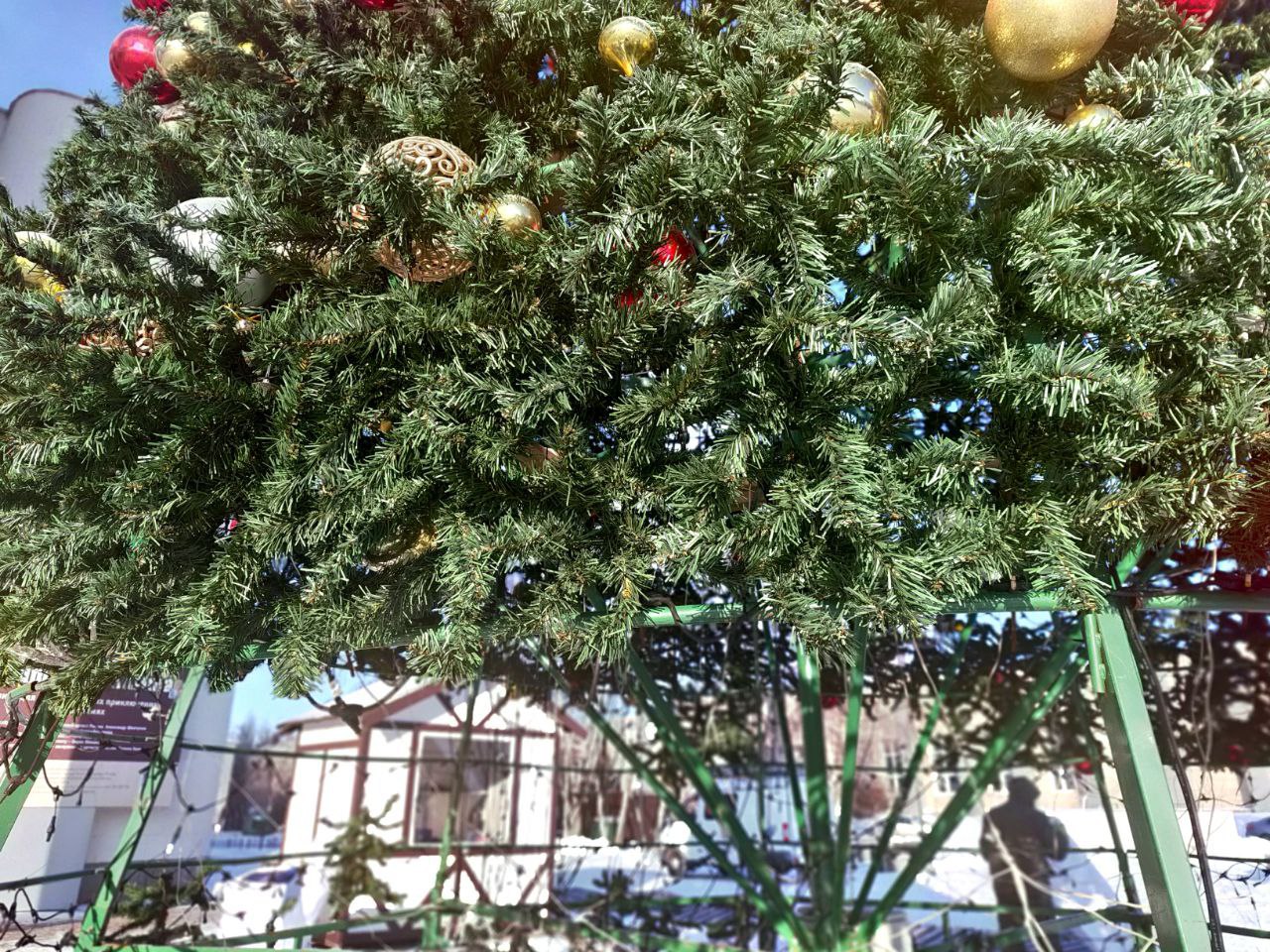 Праздники позади, а значит, пришло время разбирать тематические инсталляции. И к демонтажу зеленой красавицы на Театральной площади уже приступили специалисты.