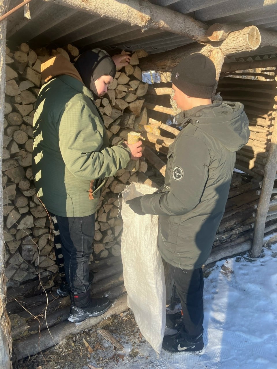 Считают участники Движения Первых Краснополянской школы Королёв Сергей, Старых Данил и Петраш Иван, которые проведали ветерана Каверину Лину Федоровну и помогли ей принести дров.