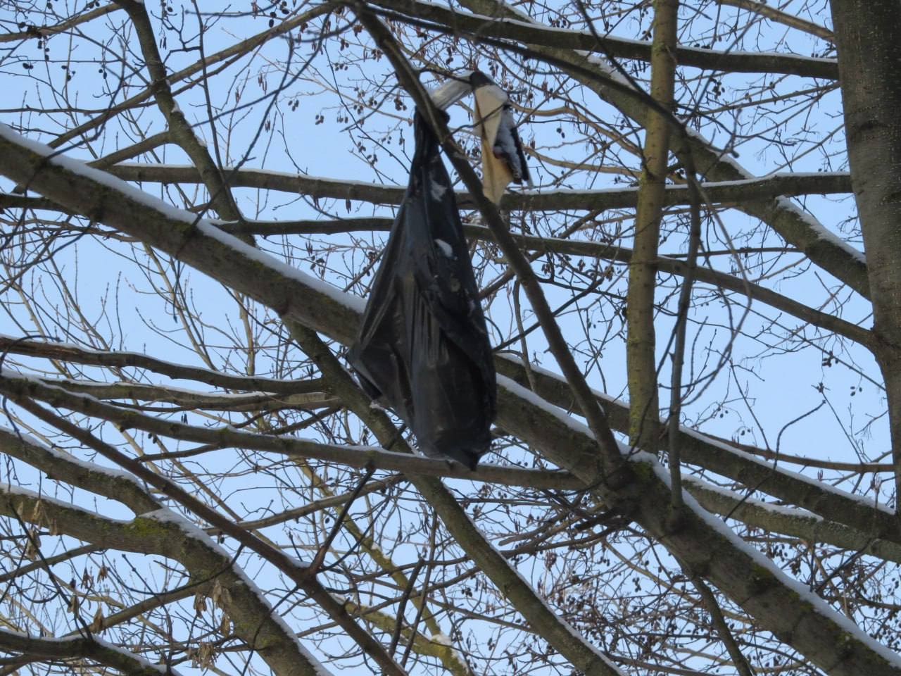 По их словам, мусор не просто бросают на землю — пакеты с отходами специально забрасывают на деревья. Их связывают между собой, чтобы они лучше цеплялись за ветки, и стараются повесить как можно выше. Таких «украшений» в лесу уже десятки, и продолжается это, по наблюдениям, не первый месяц.