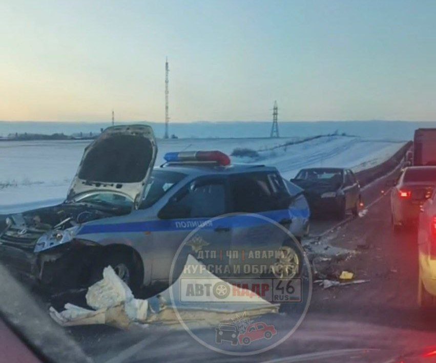 Массовая авария с полицейской машиной под Курском парализовала движение на федеральной трассе