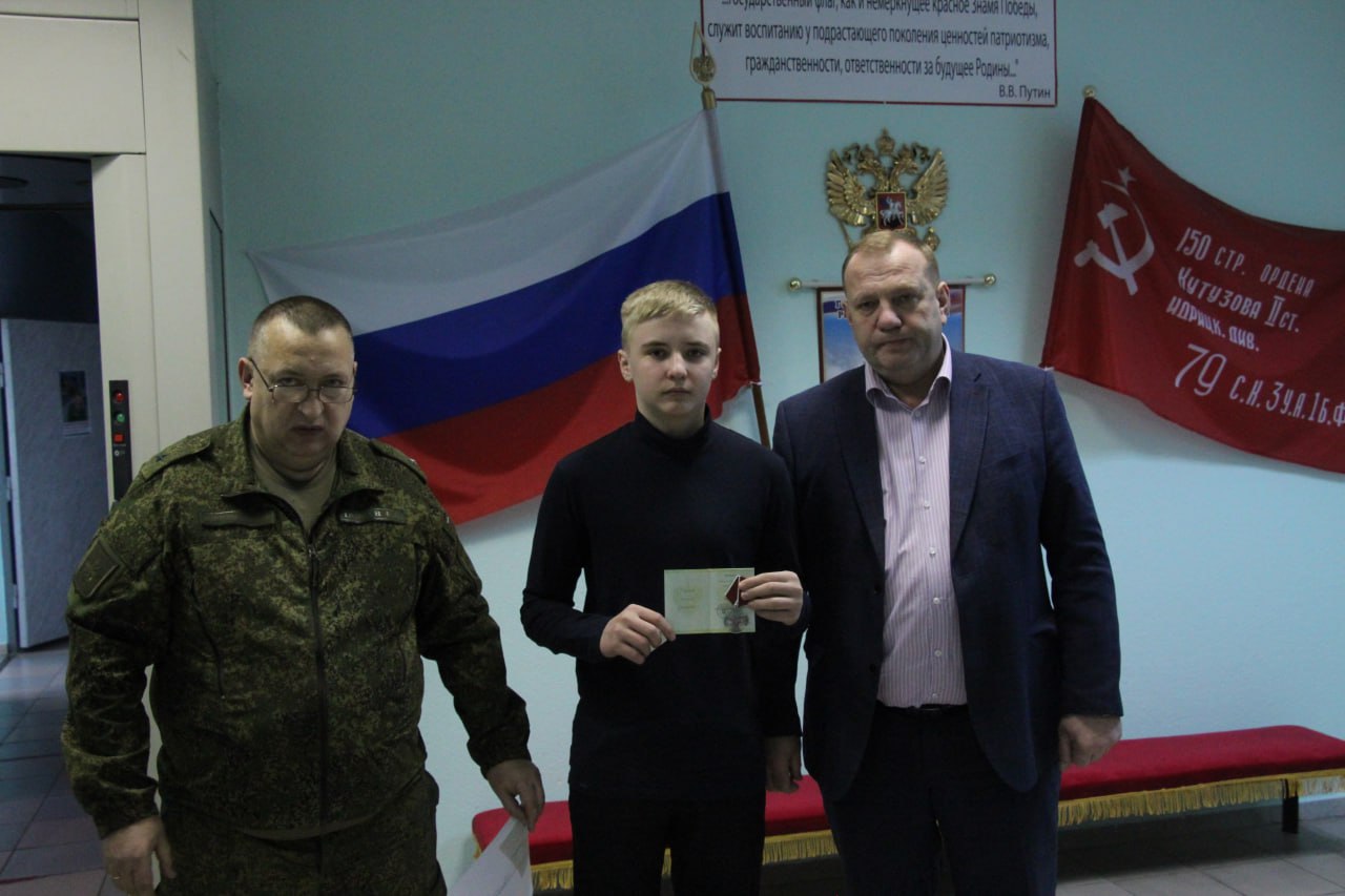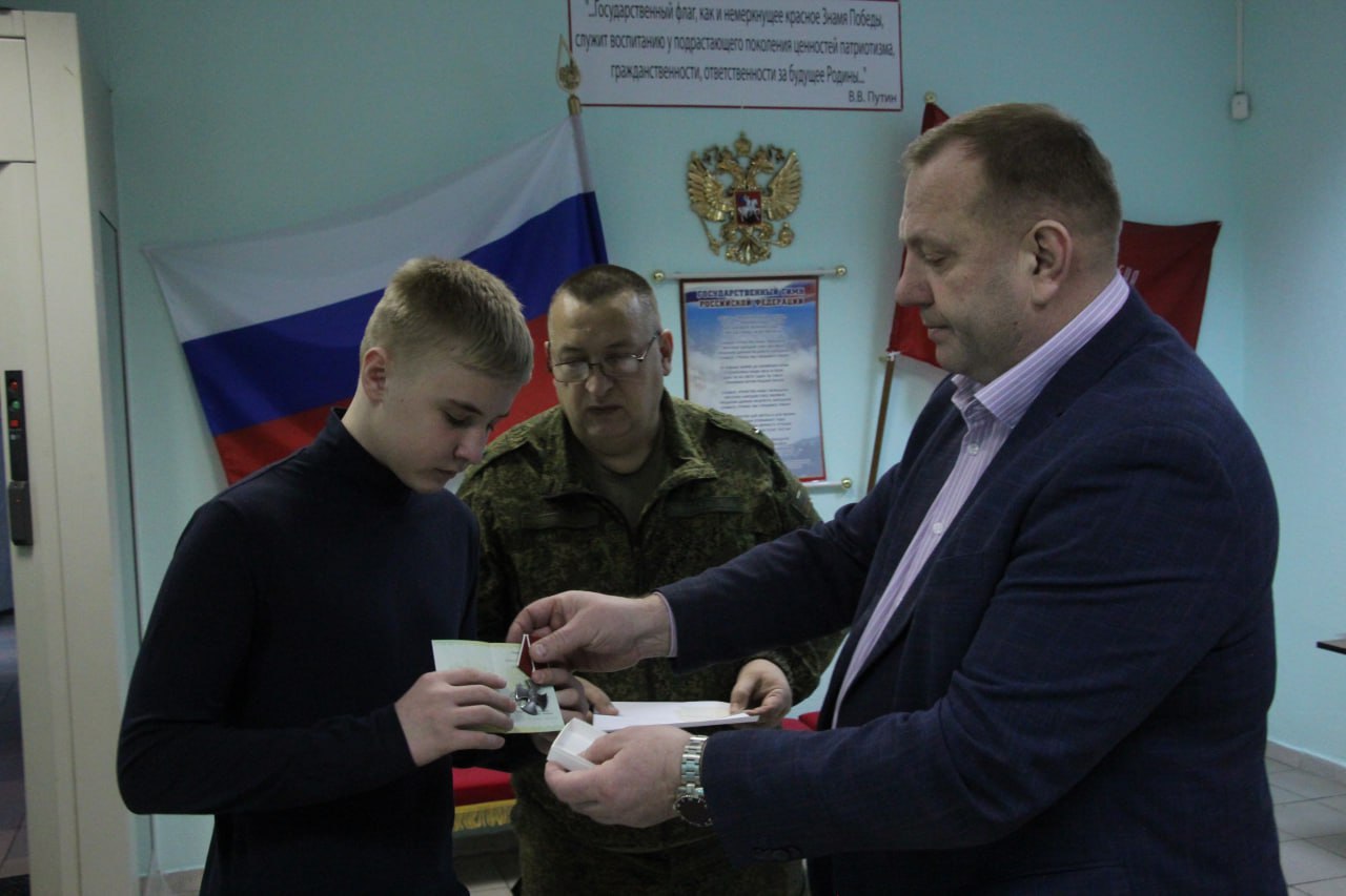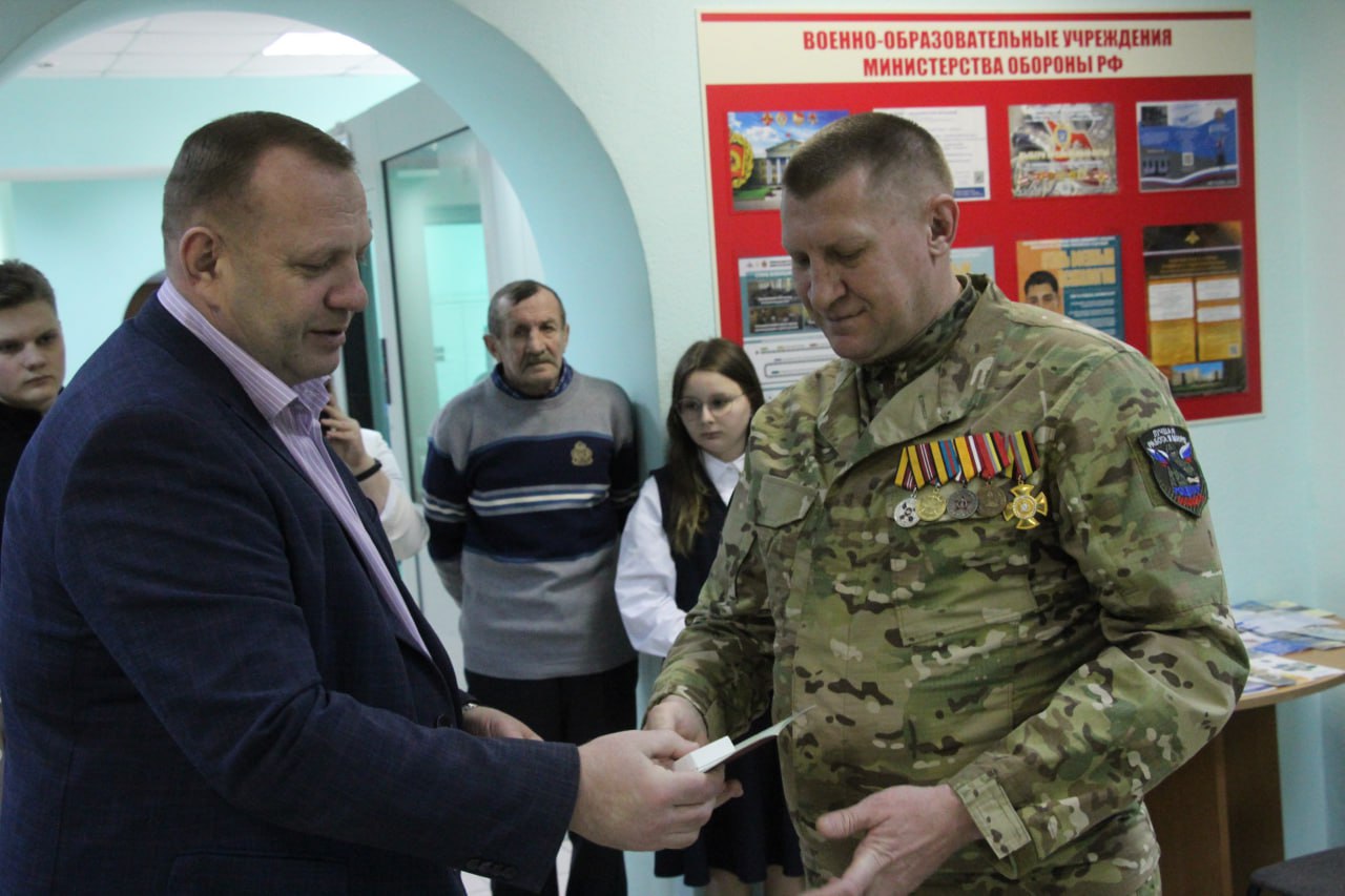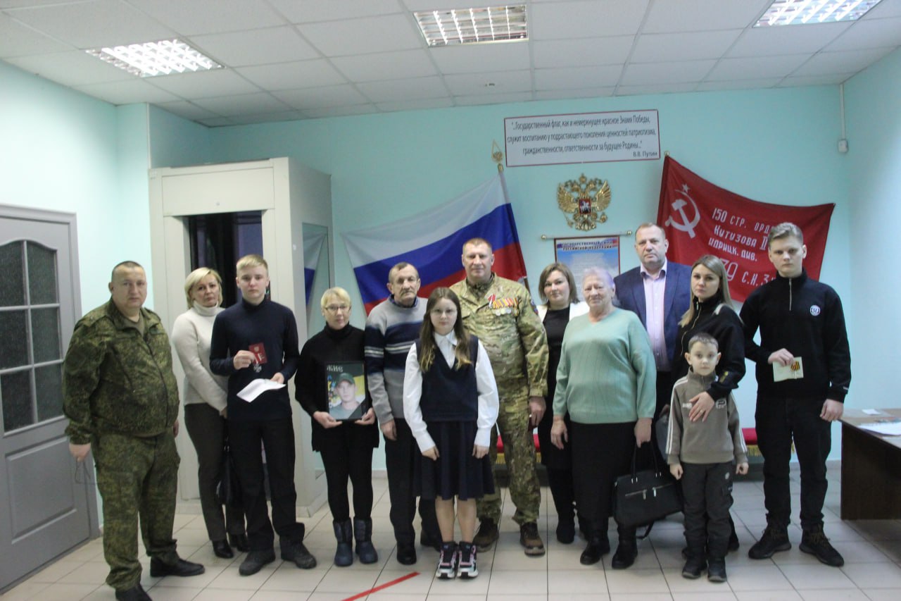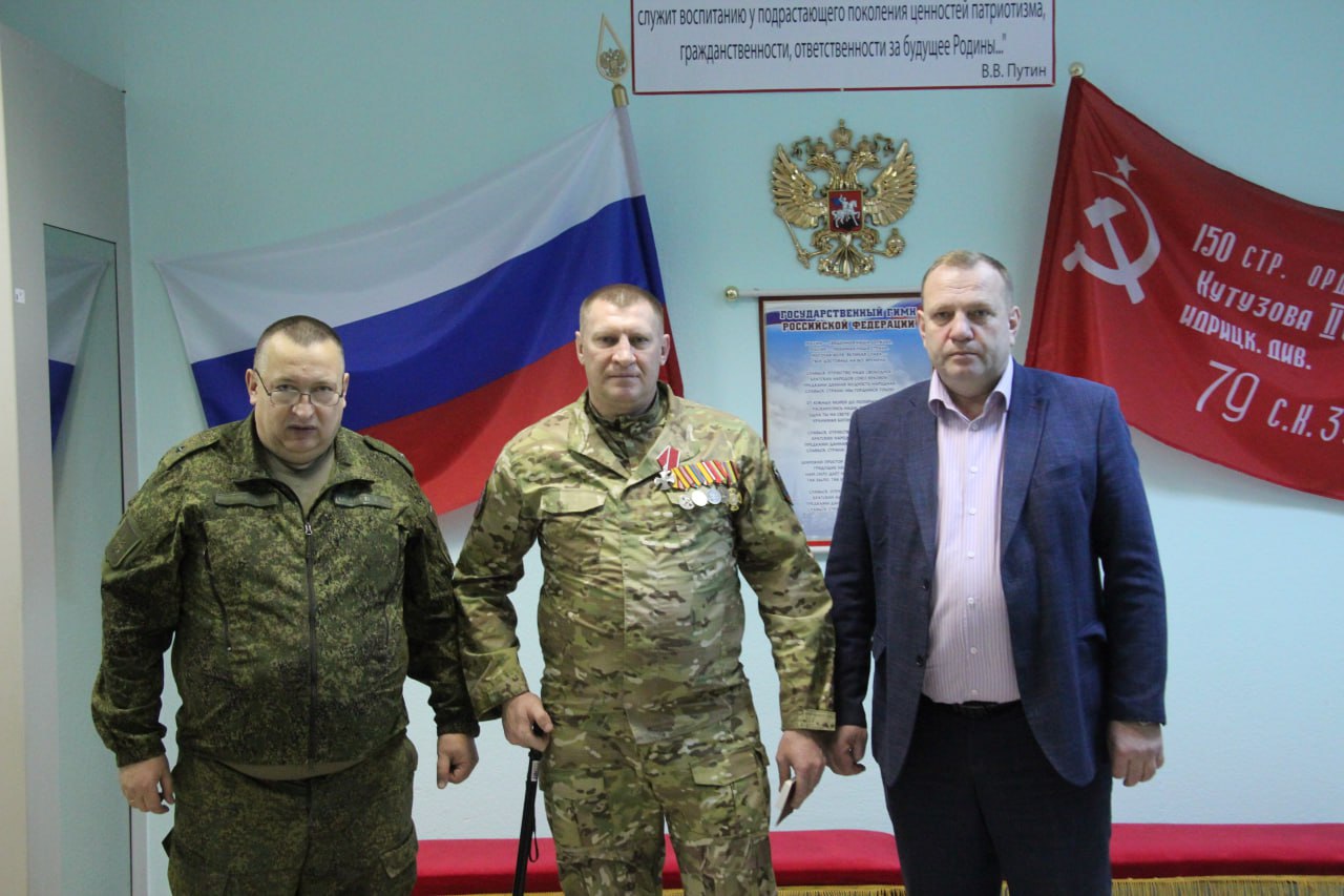 В военкомате прошло торжественное мероприятие. С военным комиссаром Евгением Тазаевым вручили Орден Мужества Алексею Гостеву, ветерану боевых действий, уроженцу села Большое Жирово.Награда стала признанием героизма, проявленного при взятии вражеского укрепрайона, символом благодарности за преданность Родине.