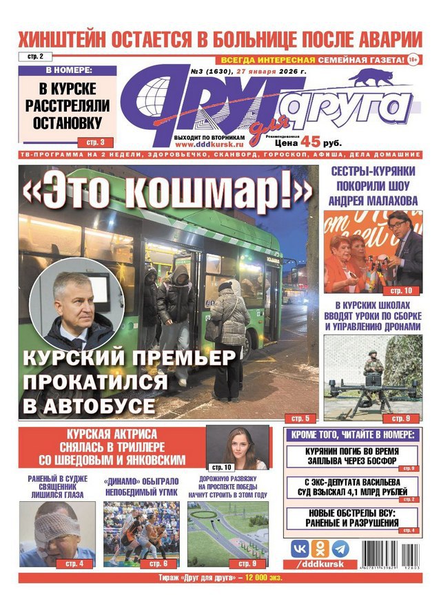 Во вторник, 27 января, вышел в свет свежий номер всегда интересной семейной газеты «Друг для друга» — одного из самых популярных и читаемых печатных изданий Курской области. Из него вы можете узнать следующее.