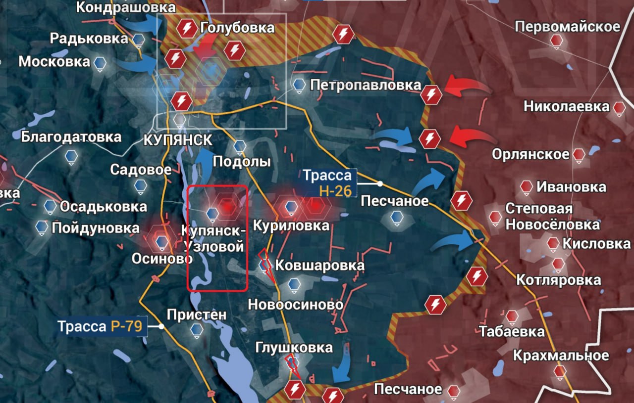 Не смею спорить с генералом армии, сумевшим освободить населенный пункт в глубине обороны противника (карта выше). По его же словам, в Ковшаровке и Глушковке идут бои (отмечено молниями).