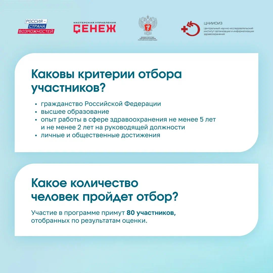 До 19 февраля продолжается приём заявок на уникальную образовательную программу «Лидерство в медицине: стратегическое управление региональными системами здравоохранения»