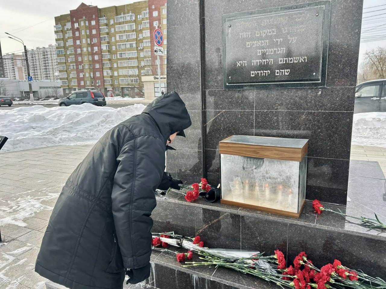 В областном центре прошла мемориальная акция, приуроченная к Международному дню памяти жертв Холокоста: жители города собрались у памятника на проспекте Победы, чтобы зажечь свечи и возложить цветы в память о трагедии, которая не обошла стороной и наш город в годы оккупации.